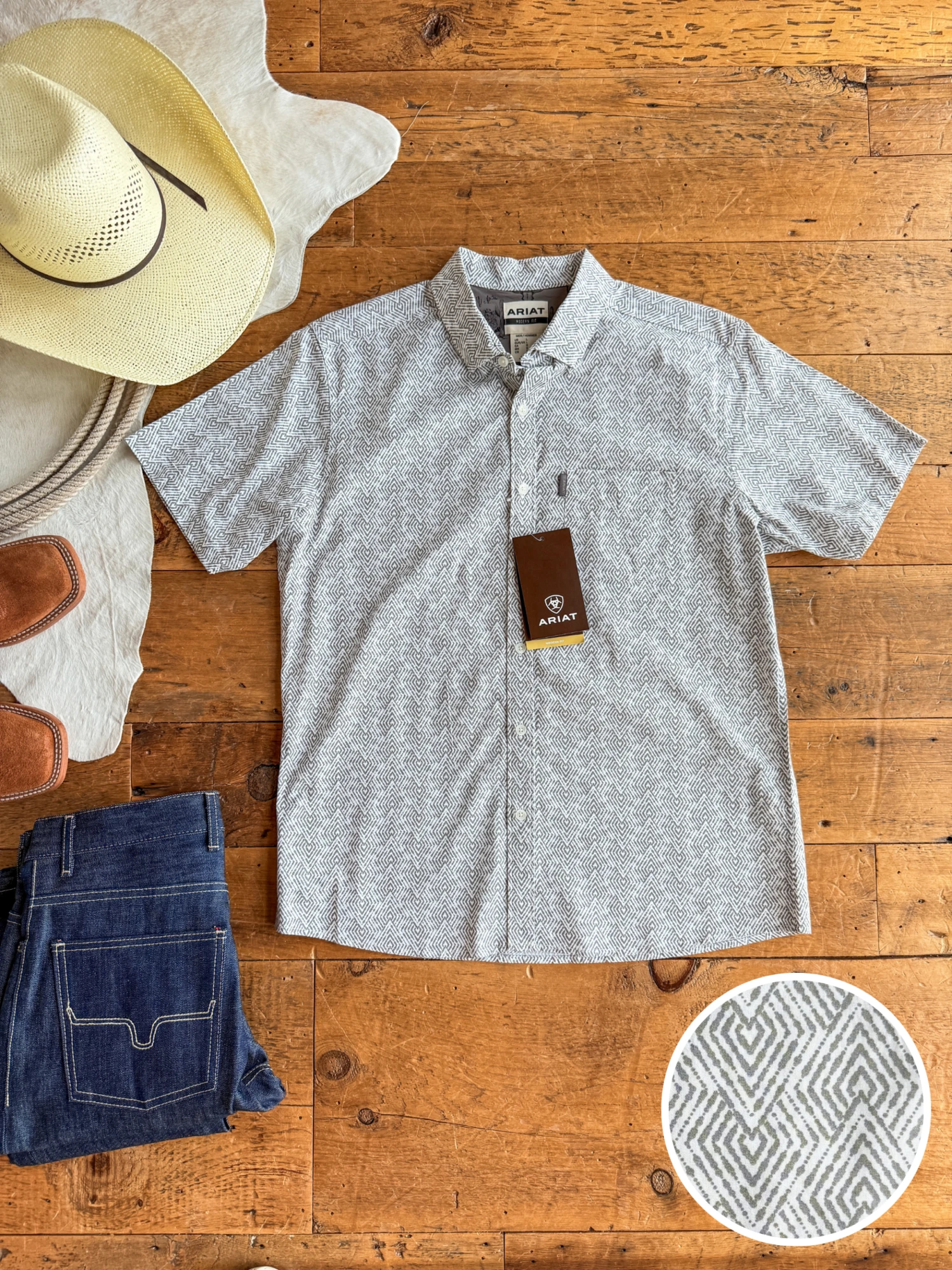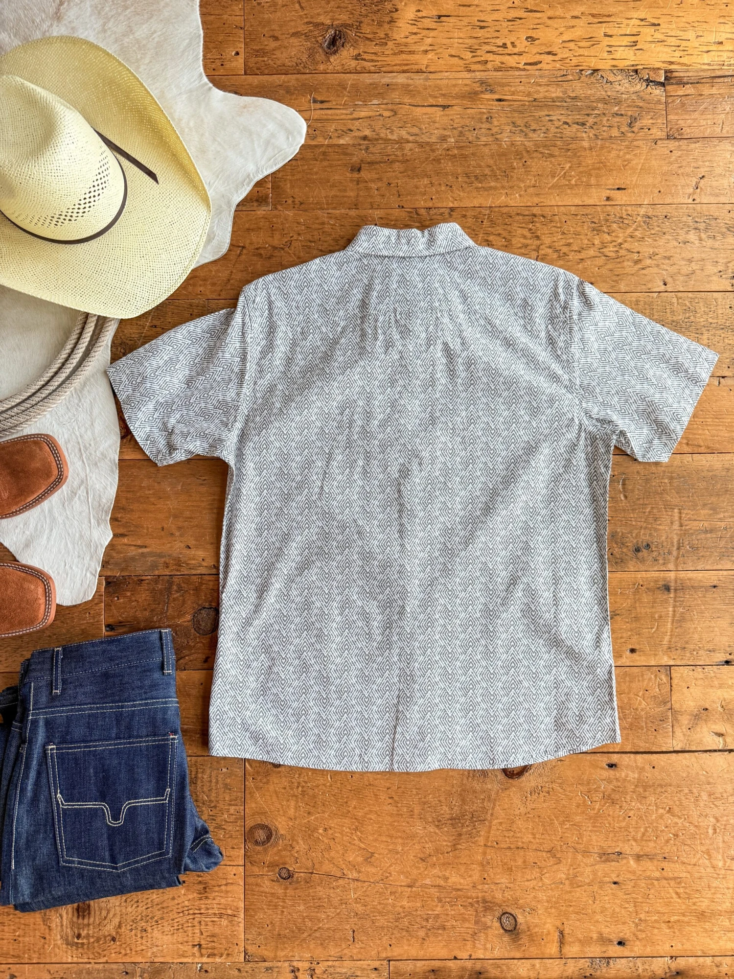 - Men’s short sleeve southwest design summary up shirt.