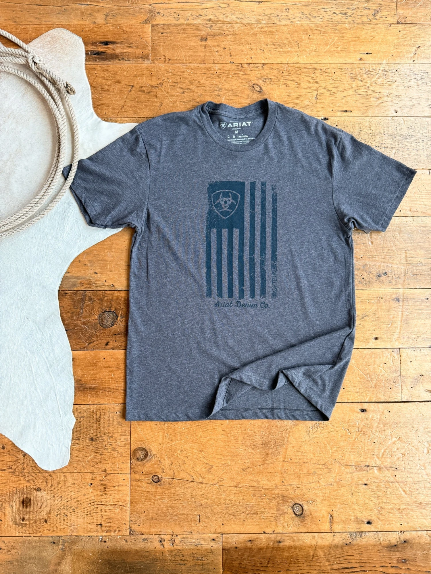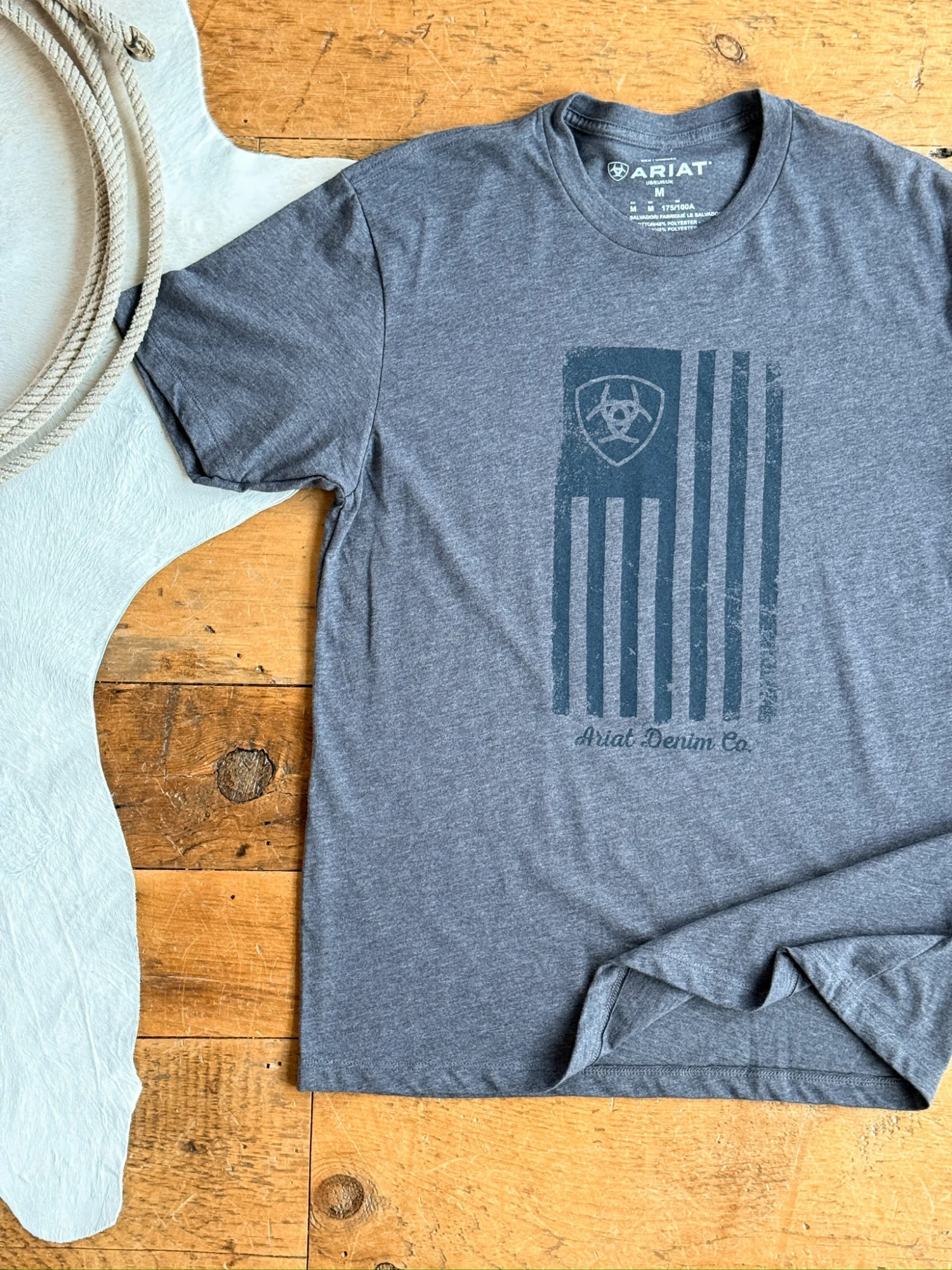 - Distressed American flag logo graphic.