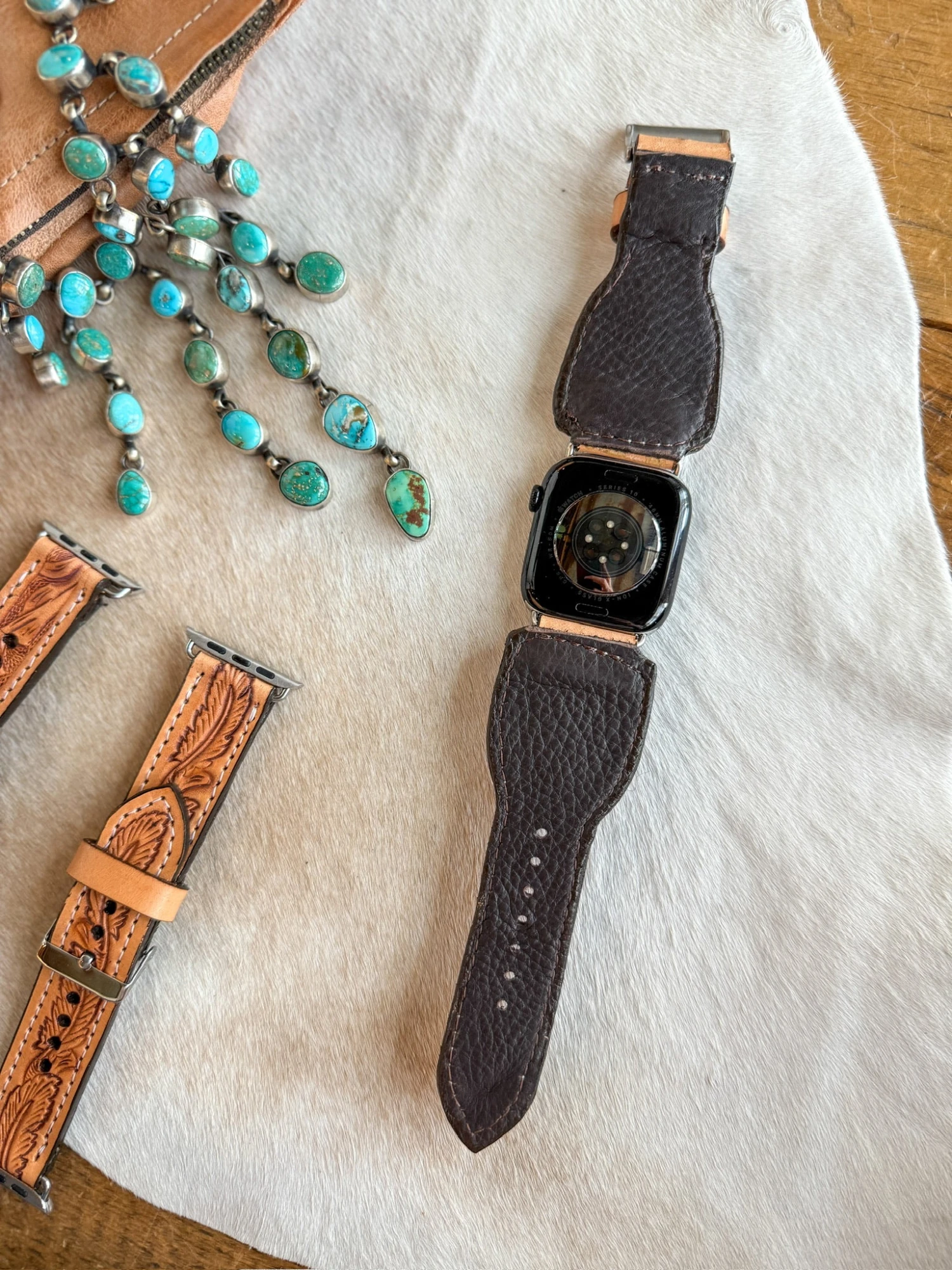 - Gorgeous floral tooled leather Apple watch band.