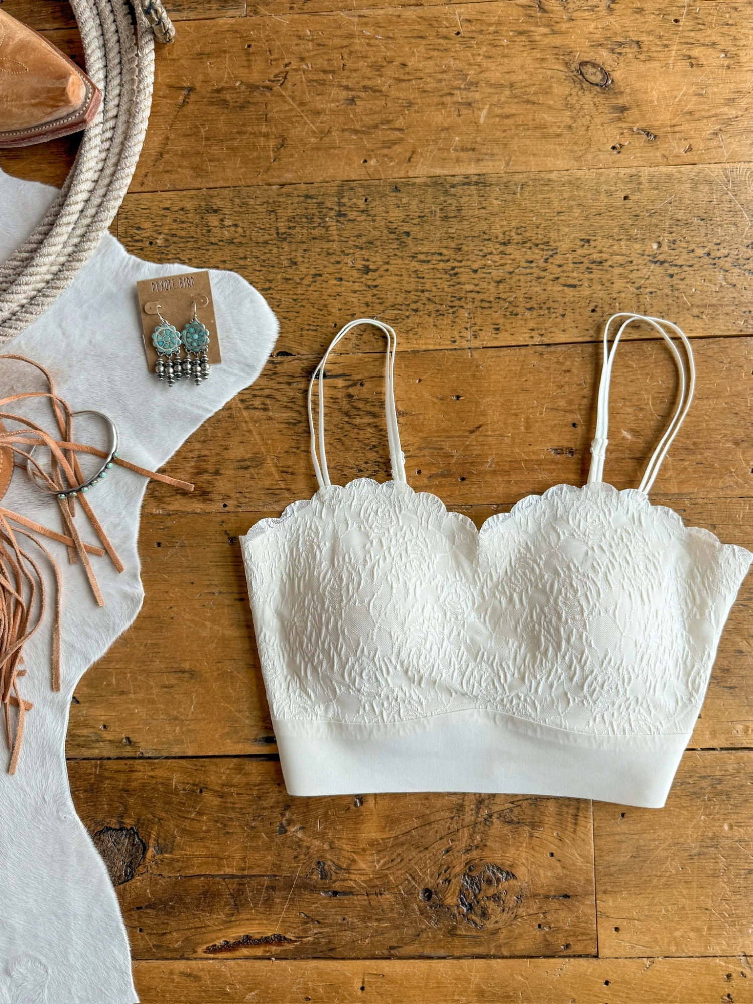 - Off white lace stretch bralette.