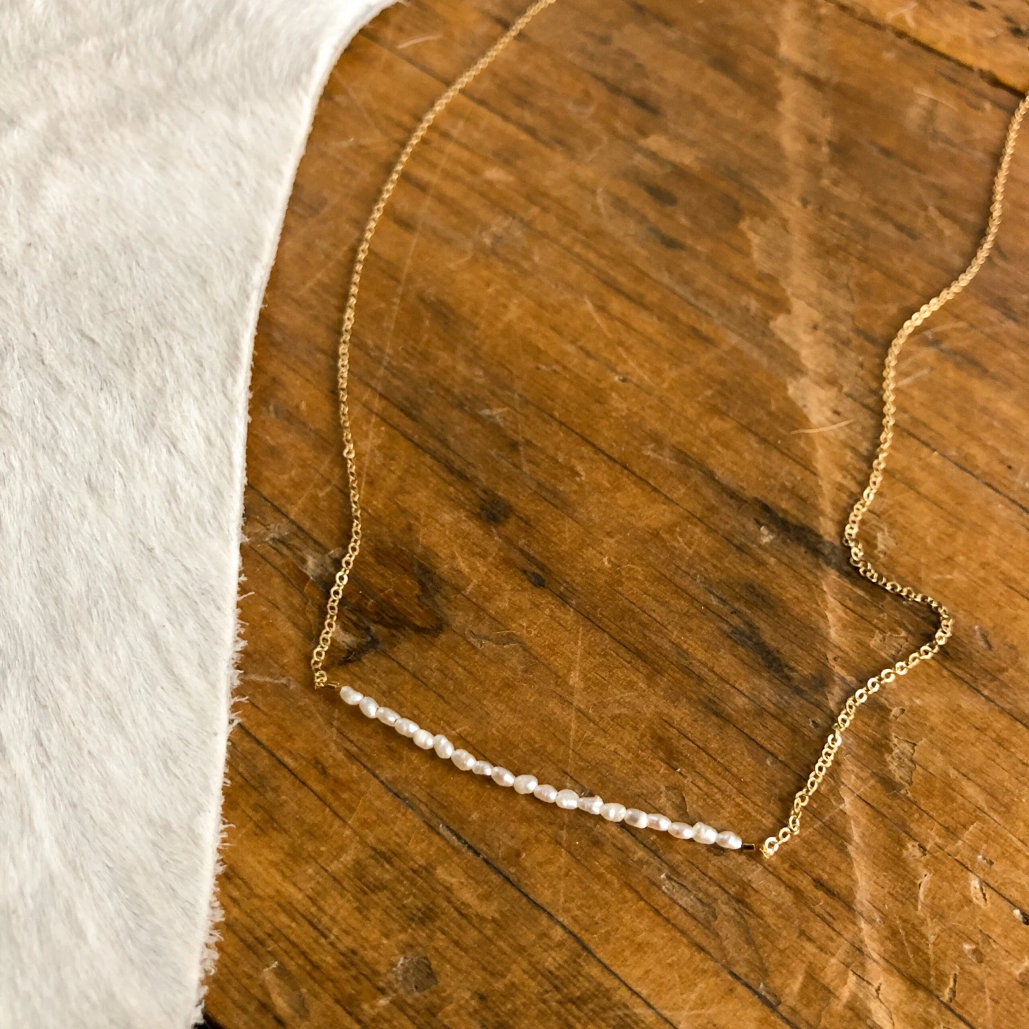 - Pearl bar gold necklace.