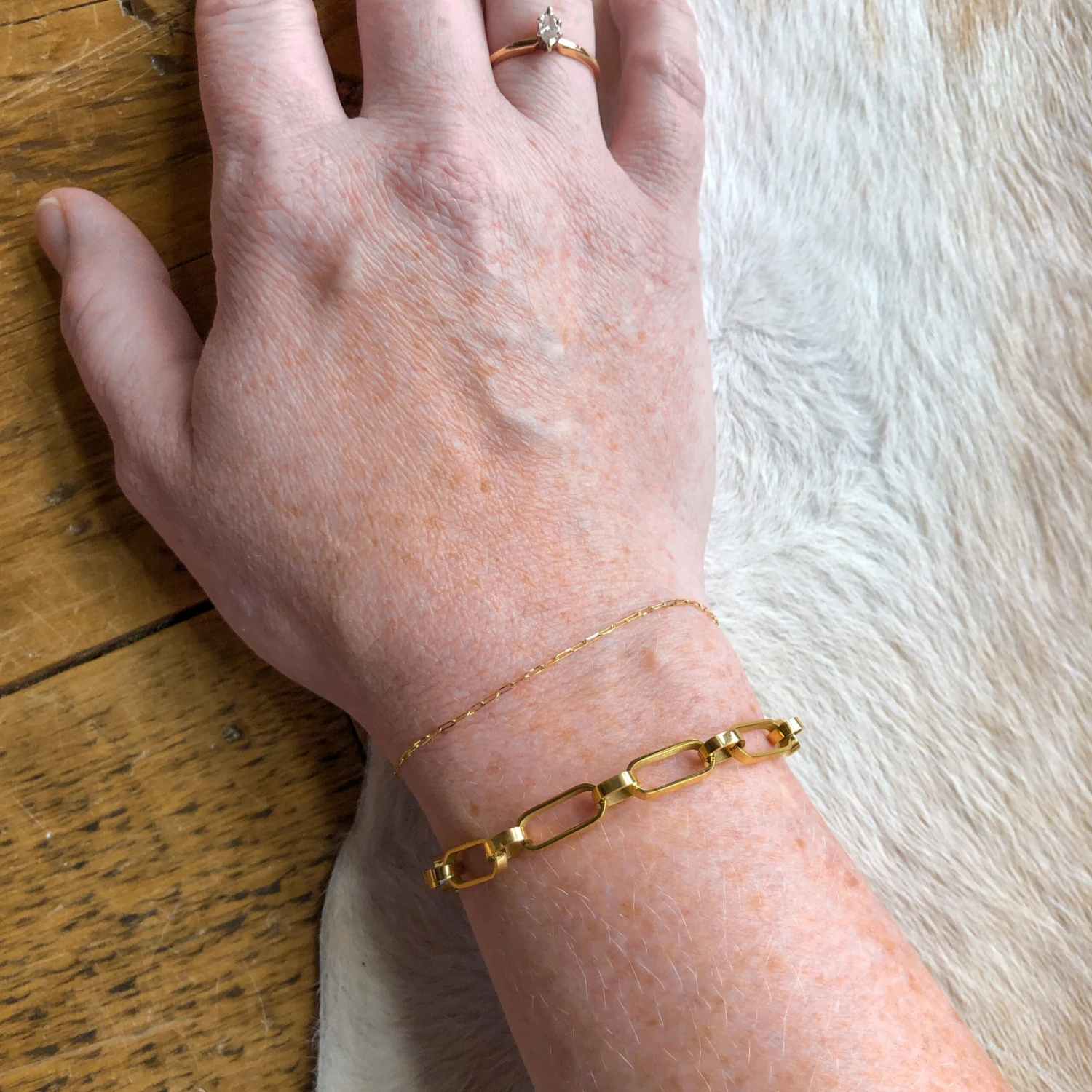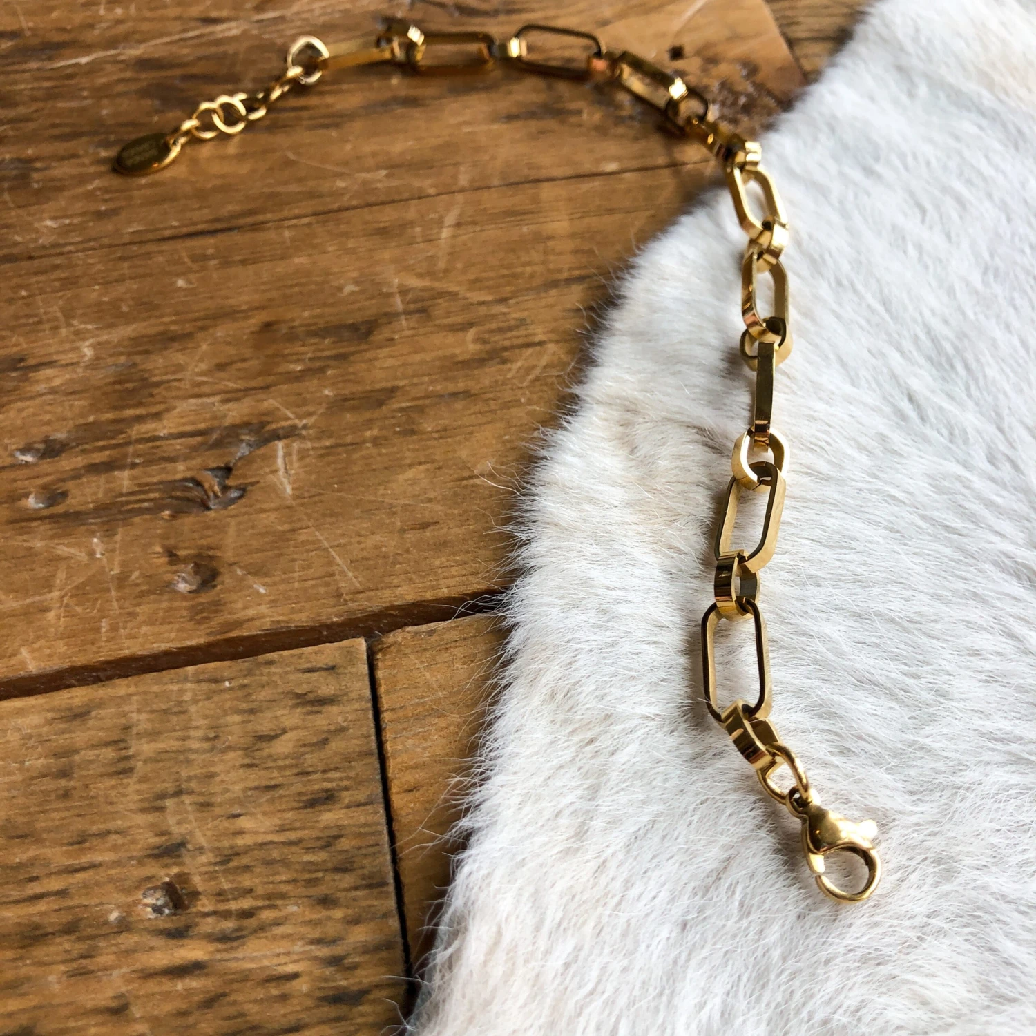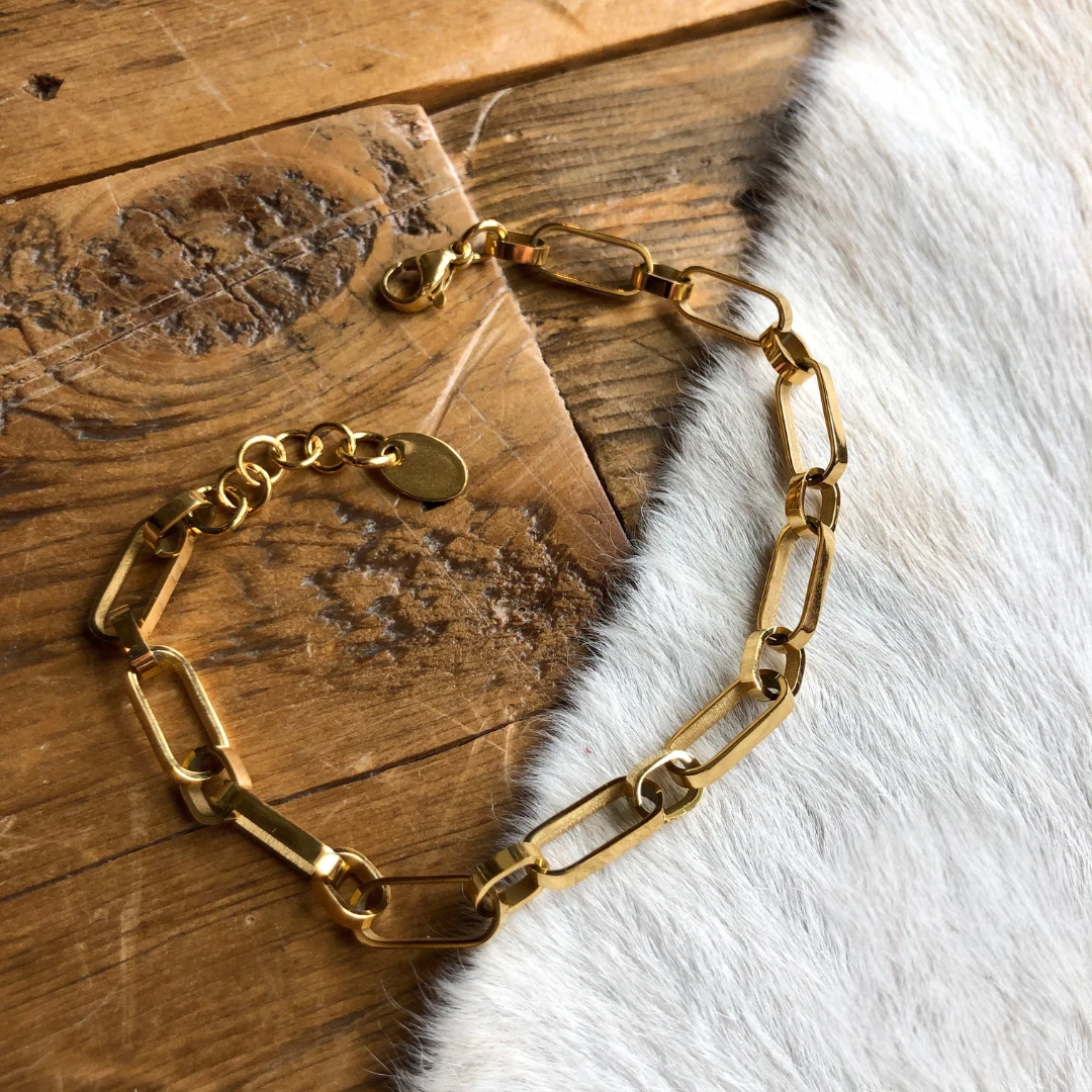 - Gold link bracelet.