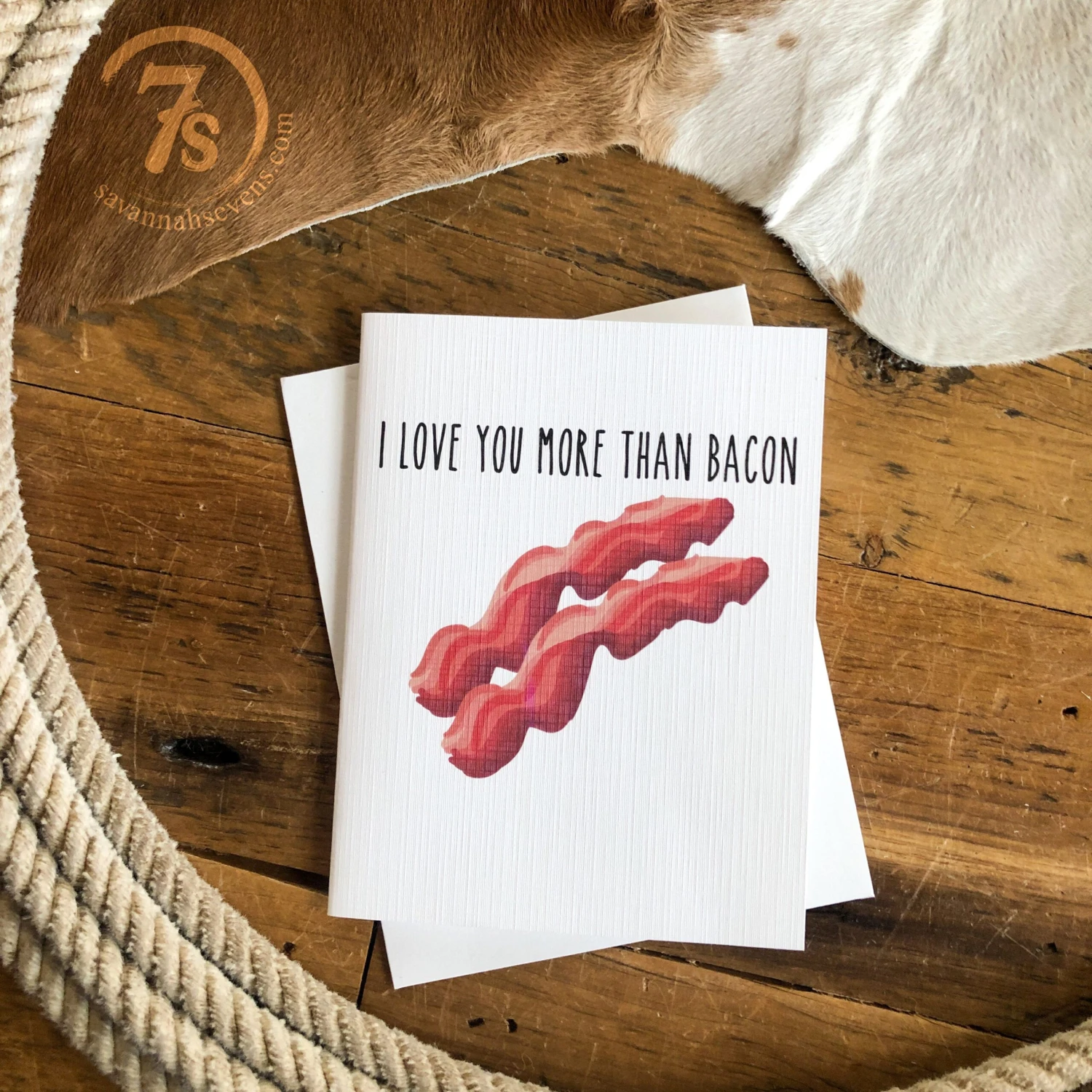 - “I Love You More Than Bacon” printed card.