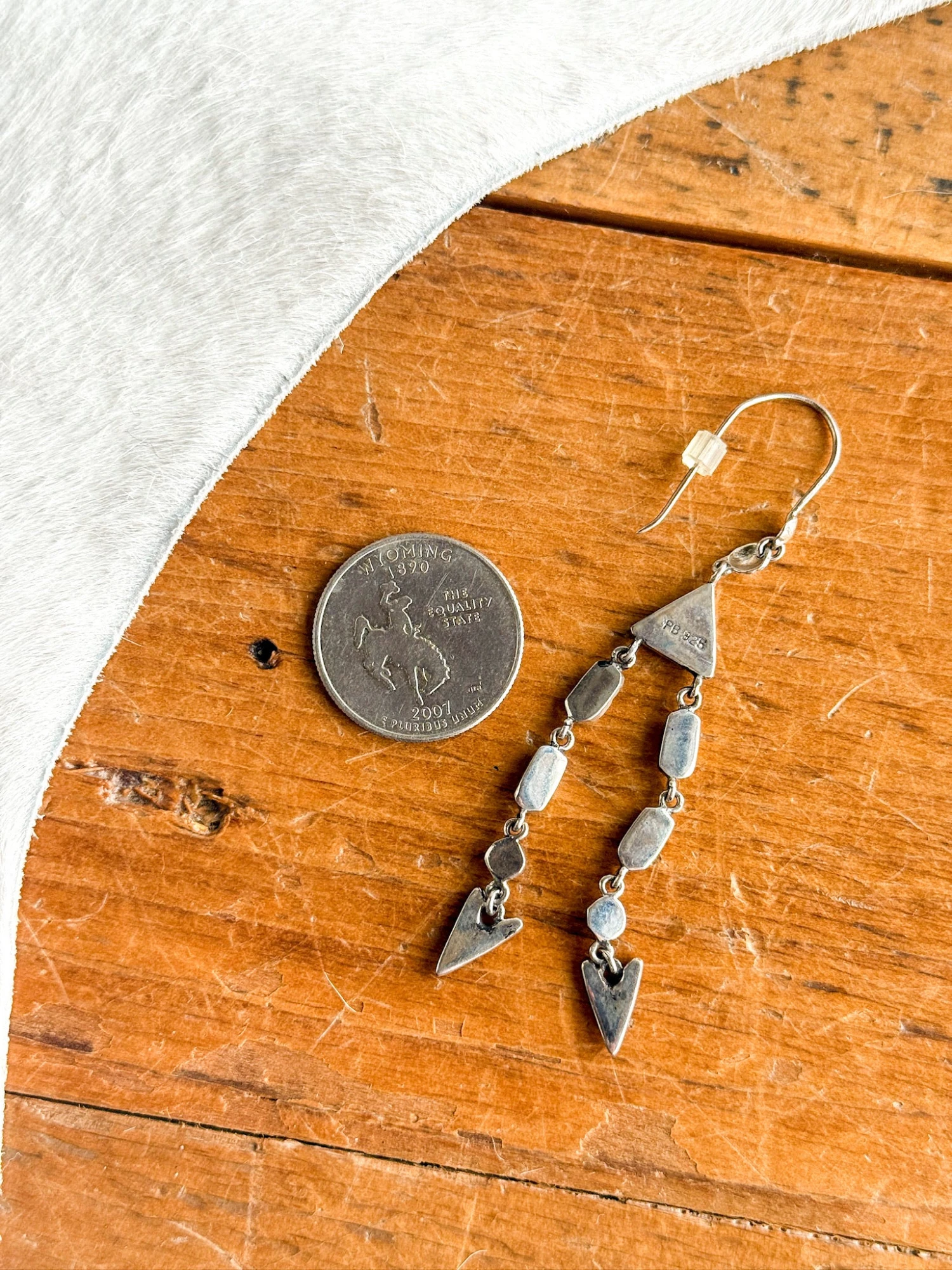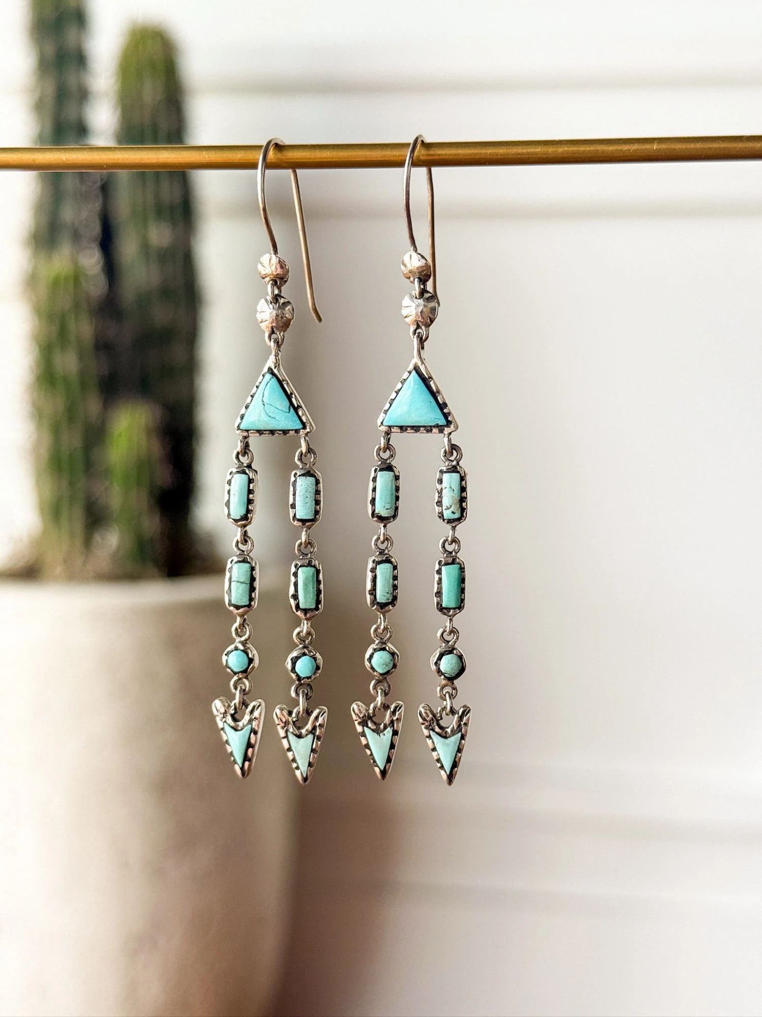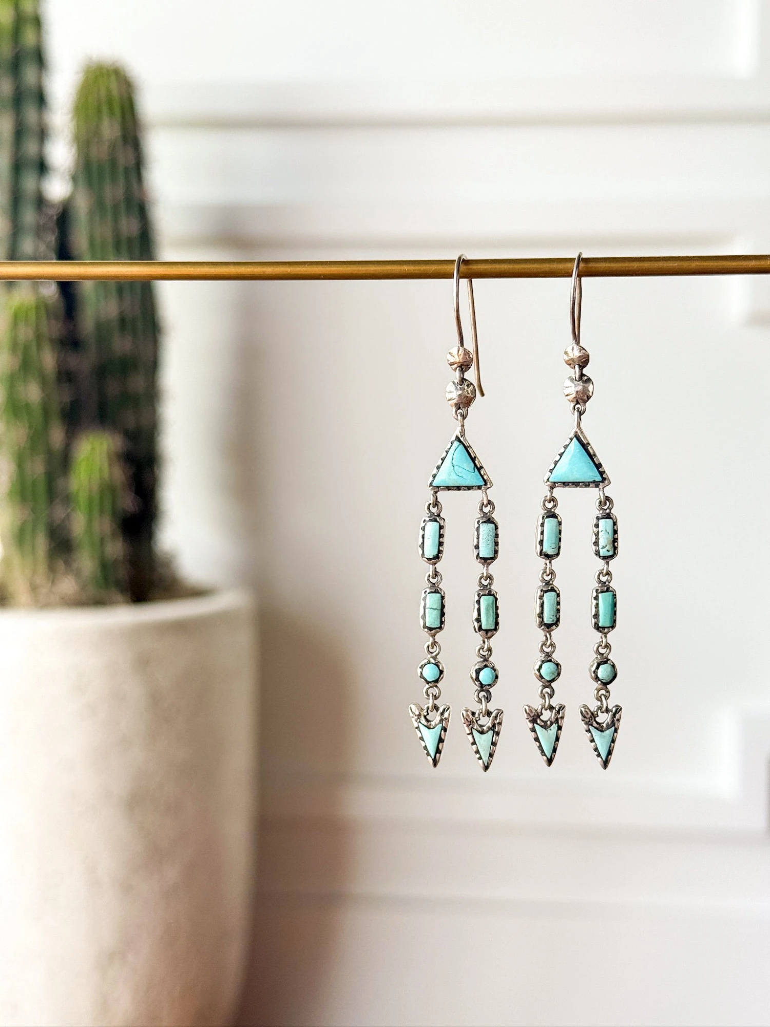 - Turquoise and sterling silver drop earrings.