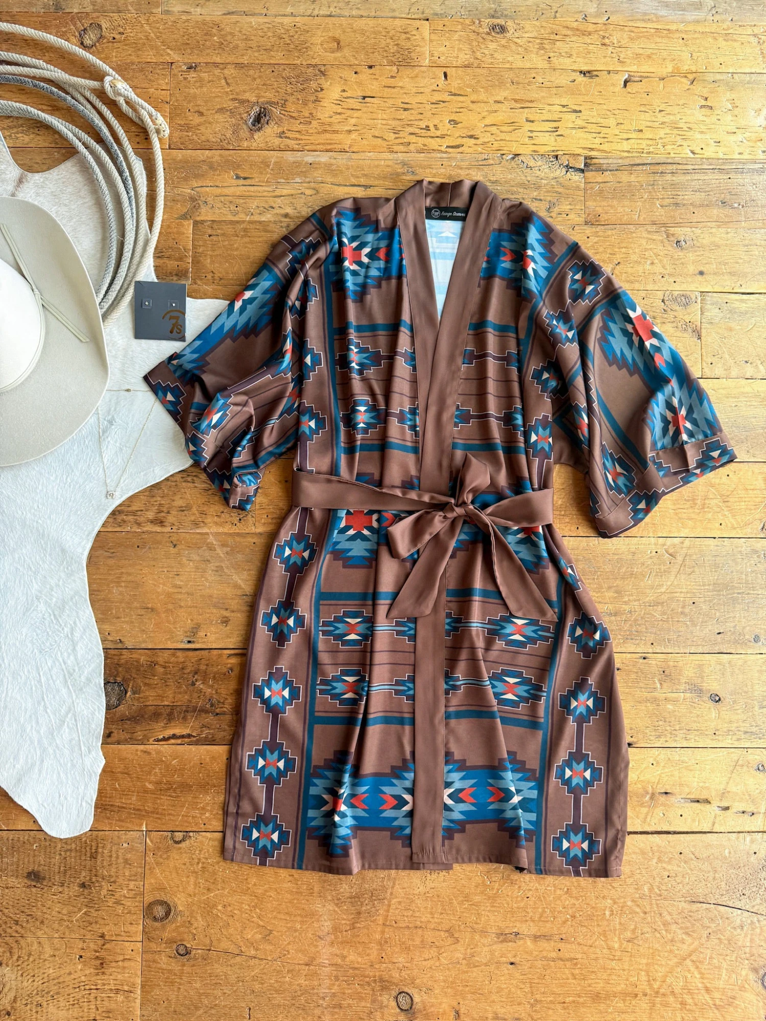 - Mocha satin southwest graphic robe.