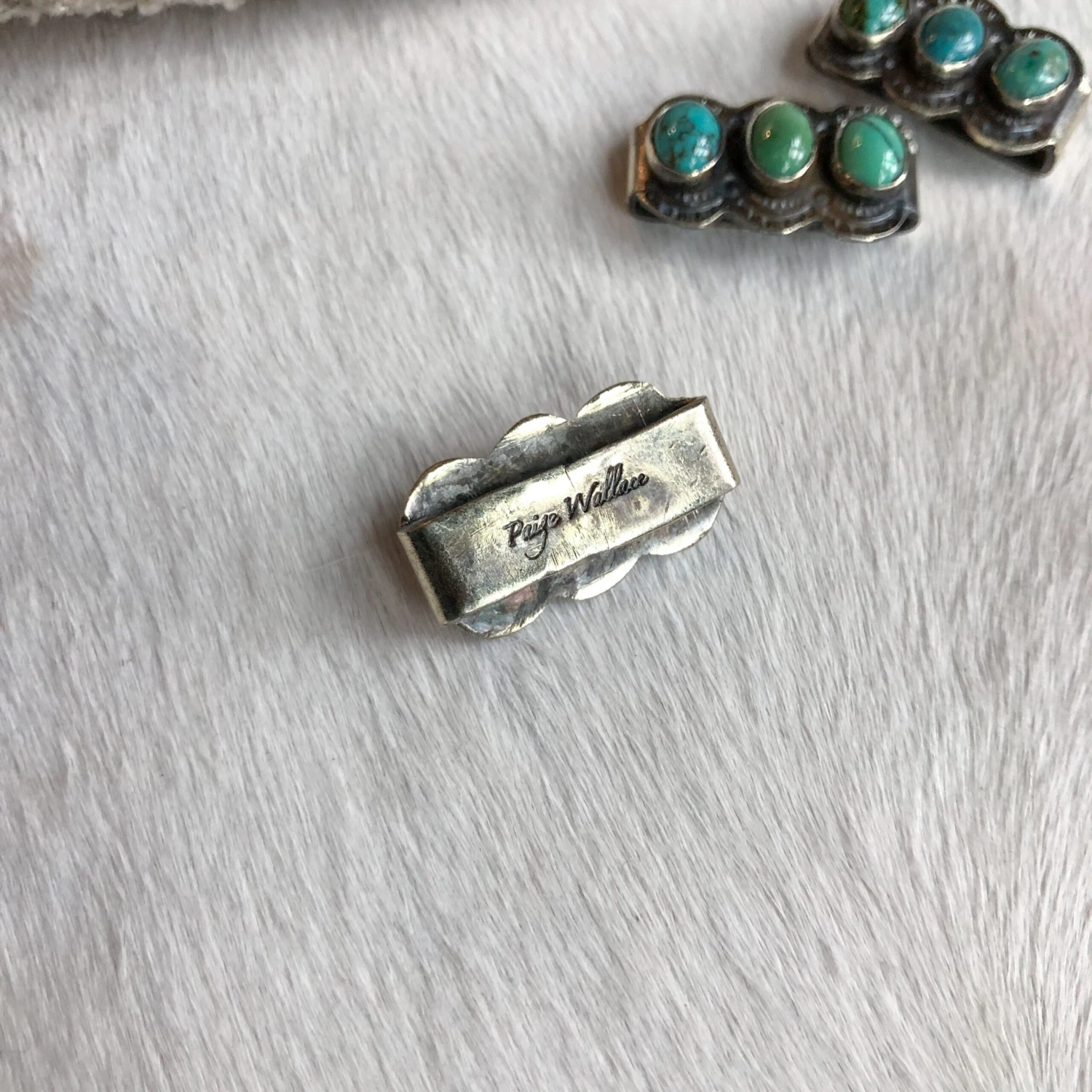 - German silver and turquoise watch band slide.