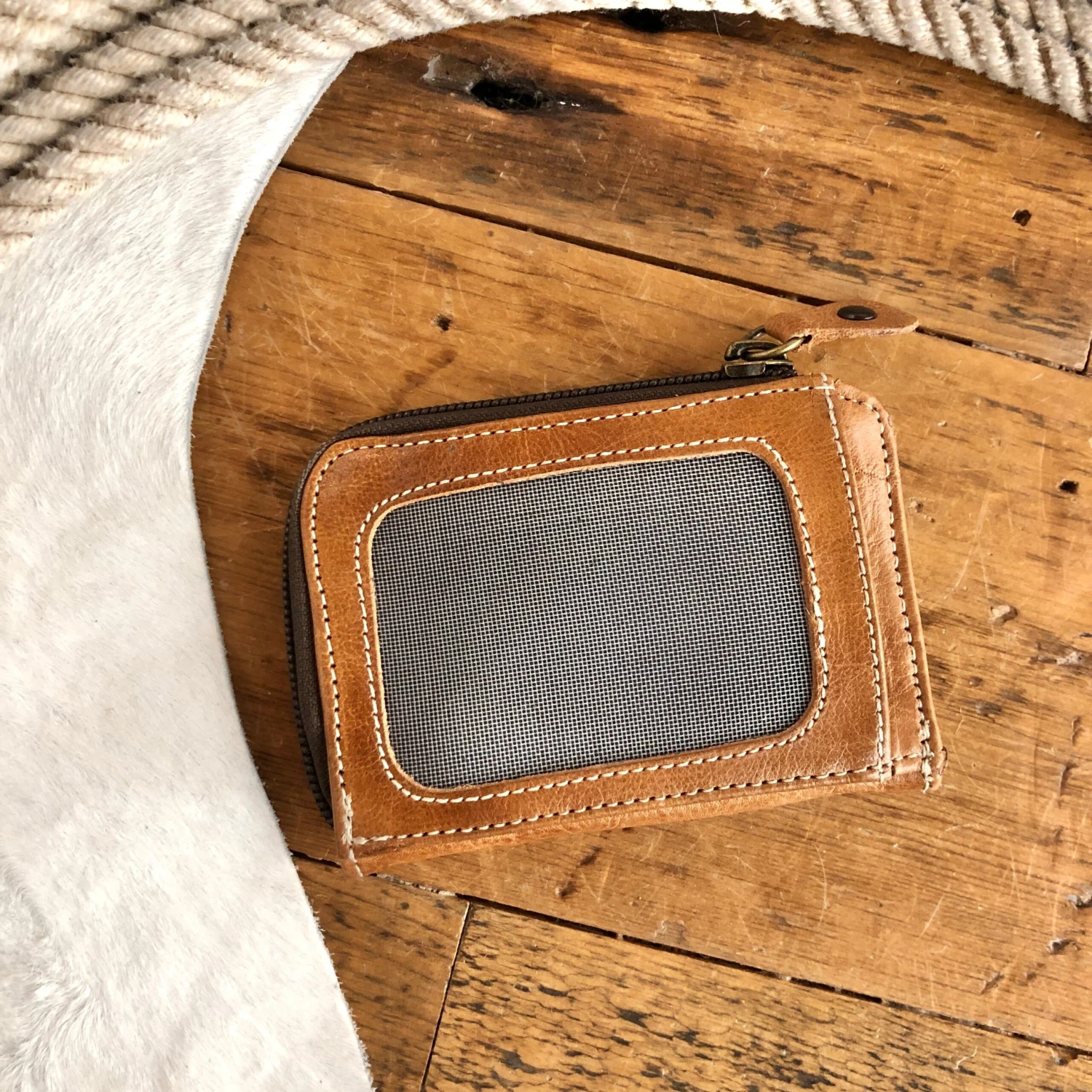 - Zipper closure opens up into a small organizer pouch for cash, coins, or extra cards.