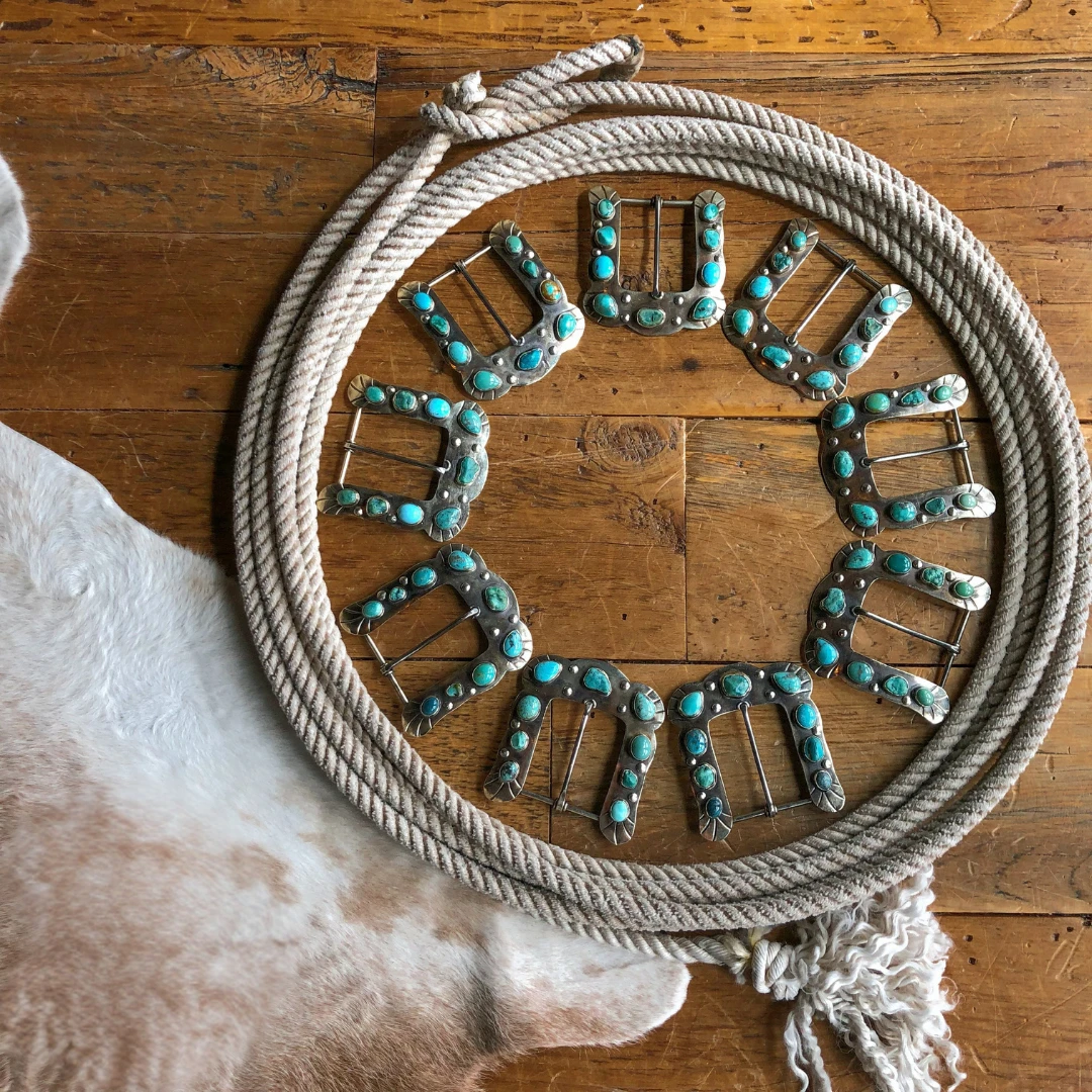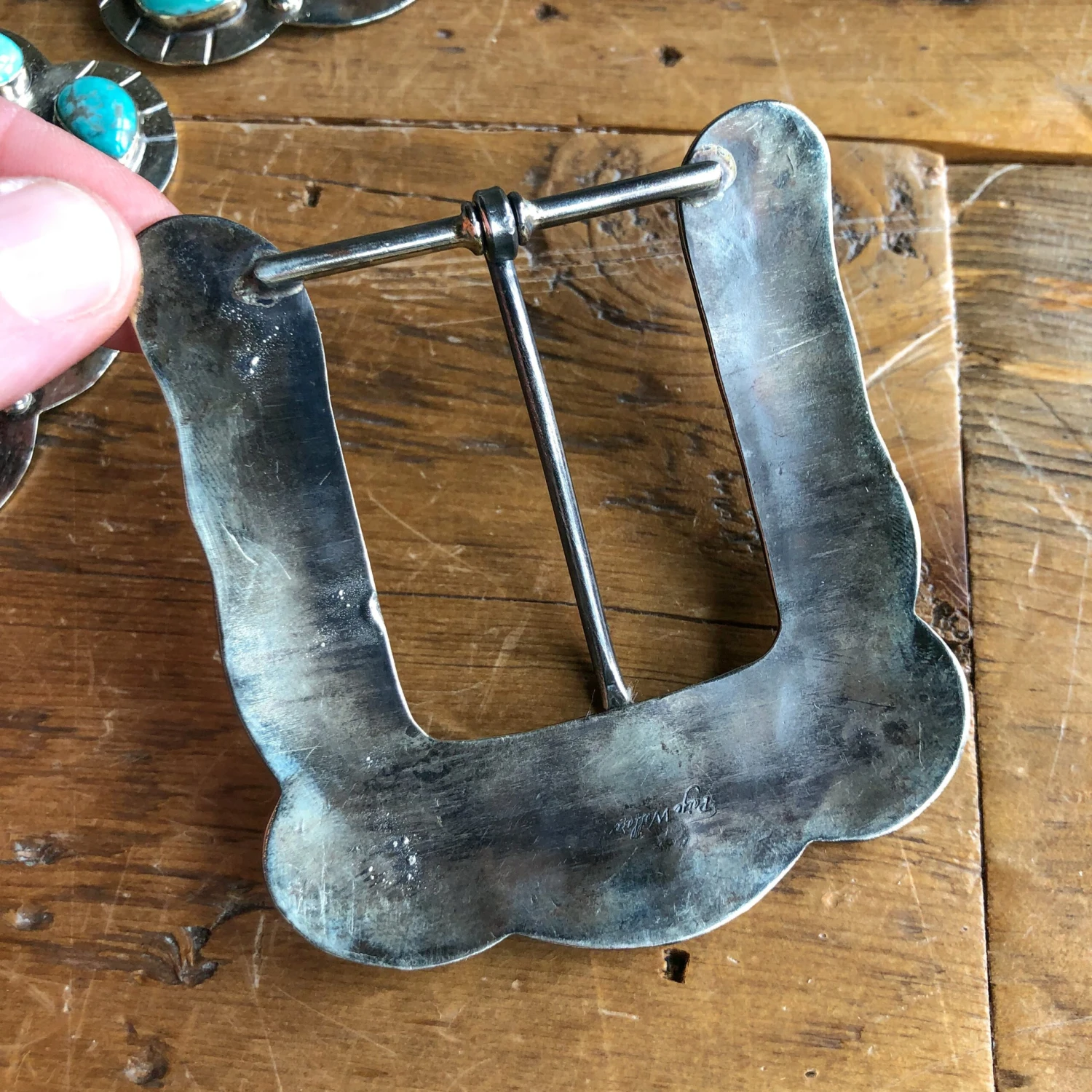 - German silver turquoise belt buckle.
