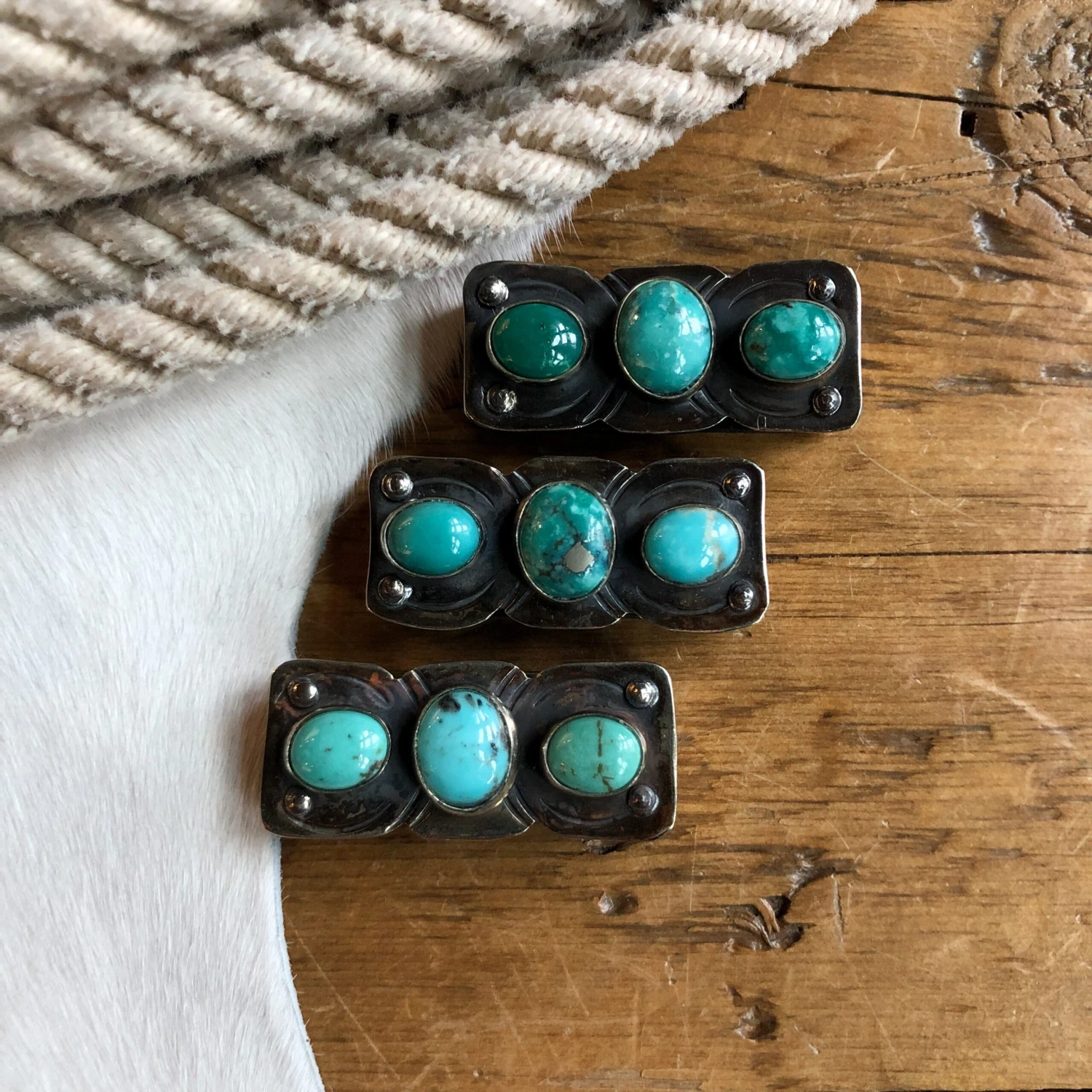 - 3 stunning one of a kind turquoise stones each unique in color and veining.
