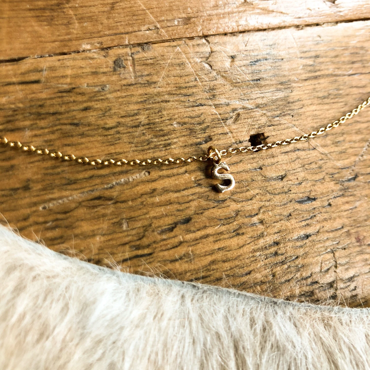 - Gold petite initial necklace.