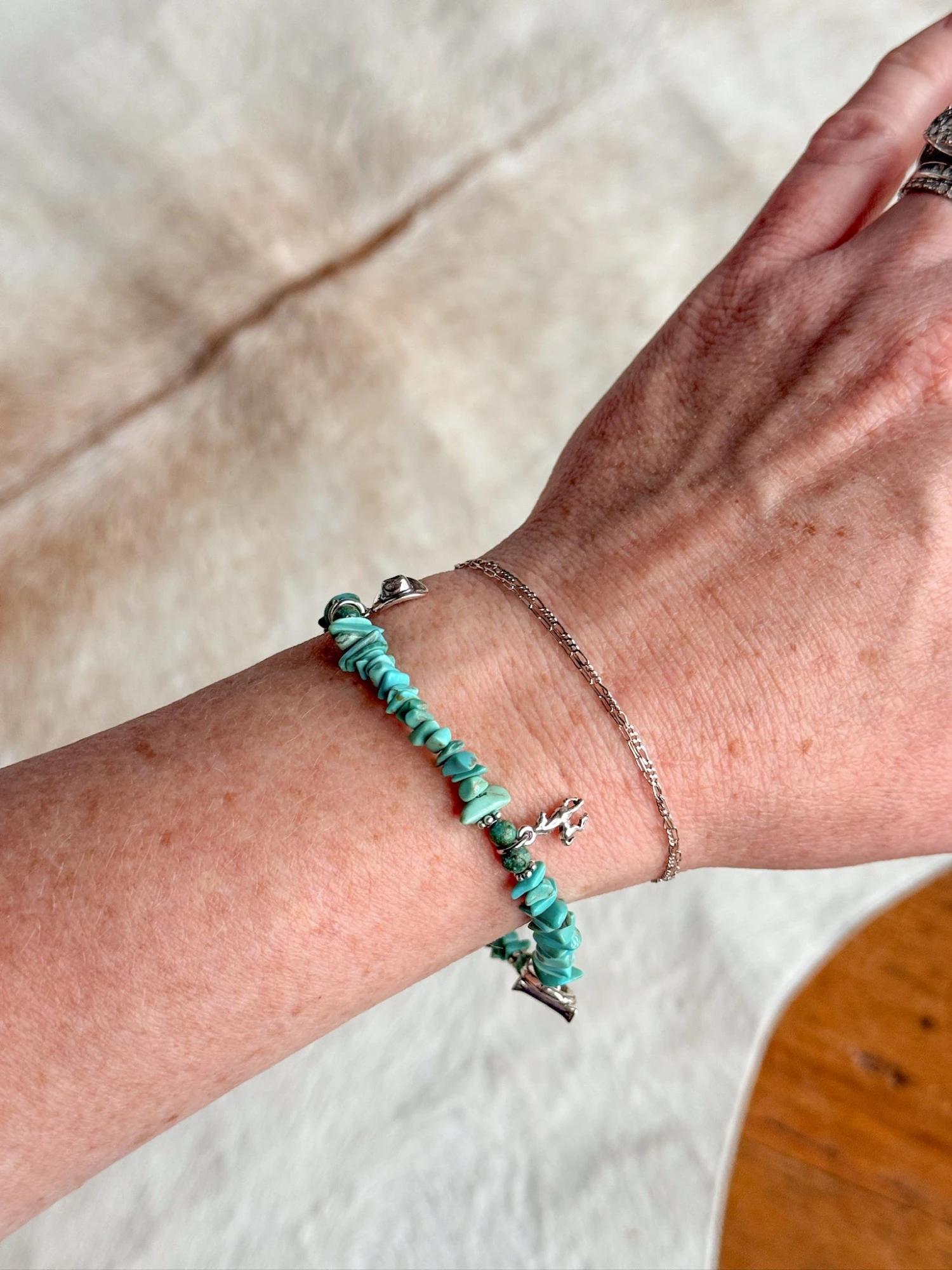 - Gorgeous turquoise chips each unique in color variation and veining.
