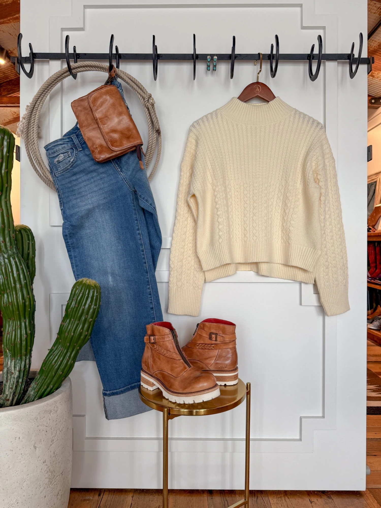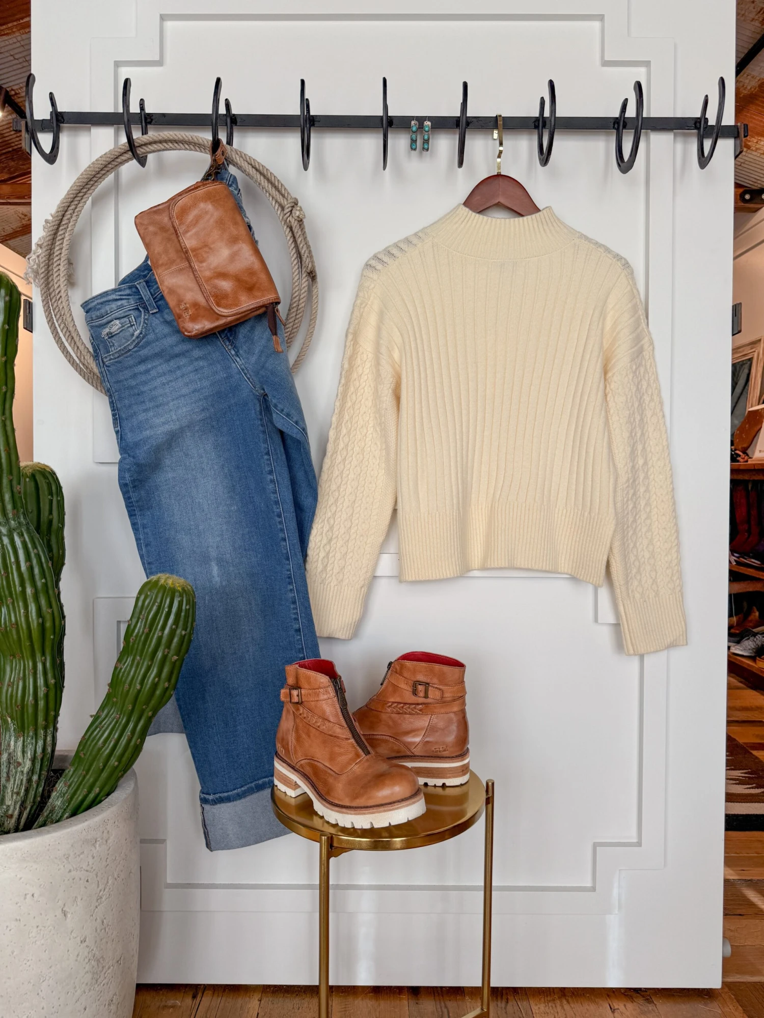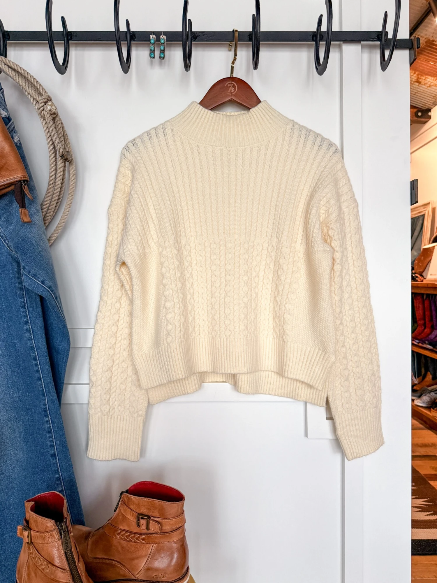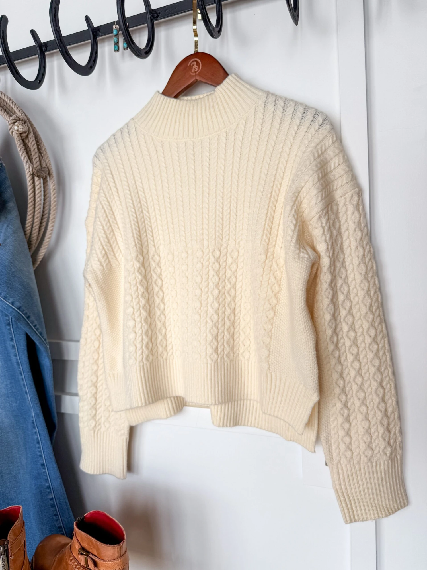 - Ivory long sleeve sweater.