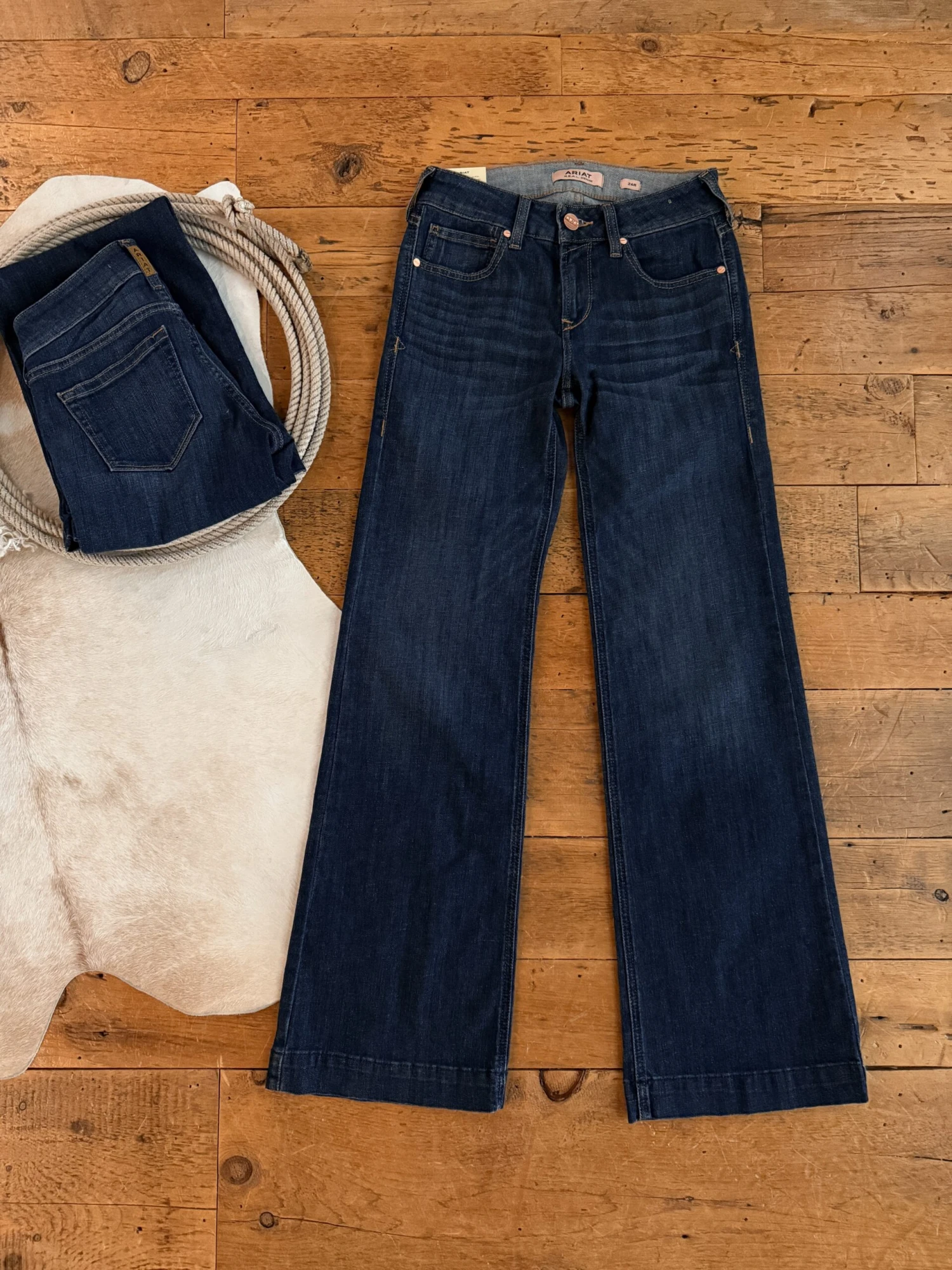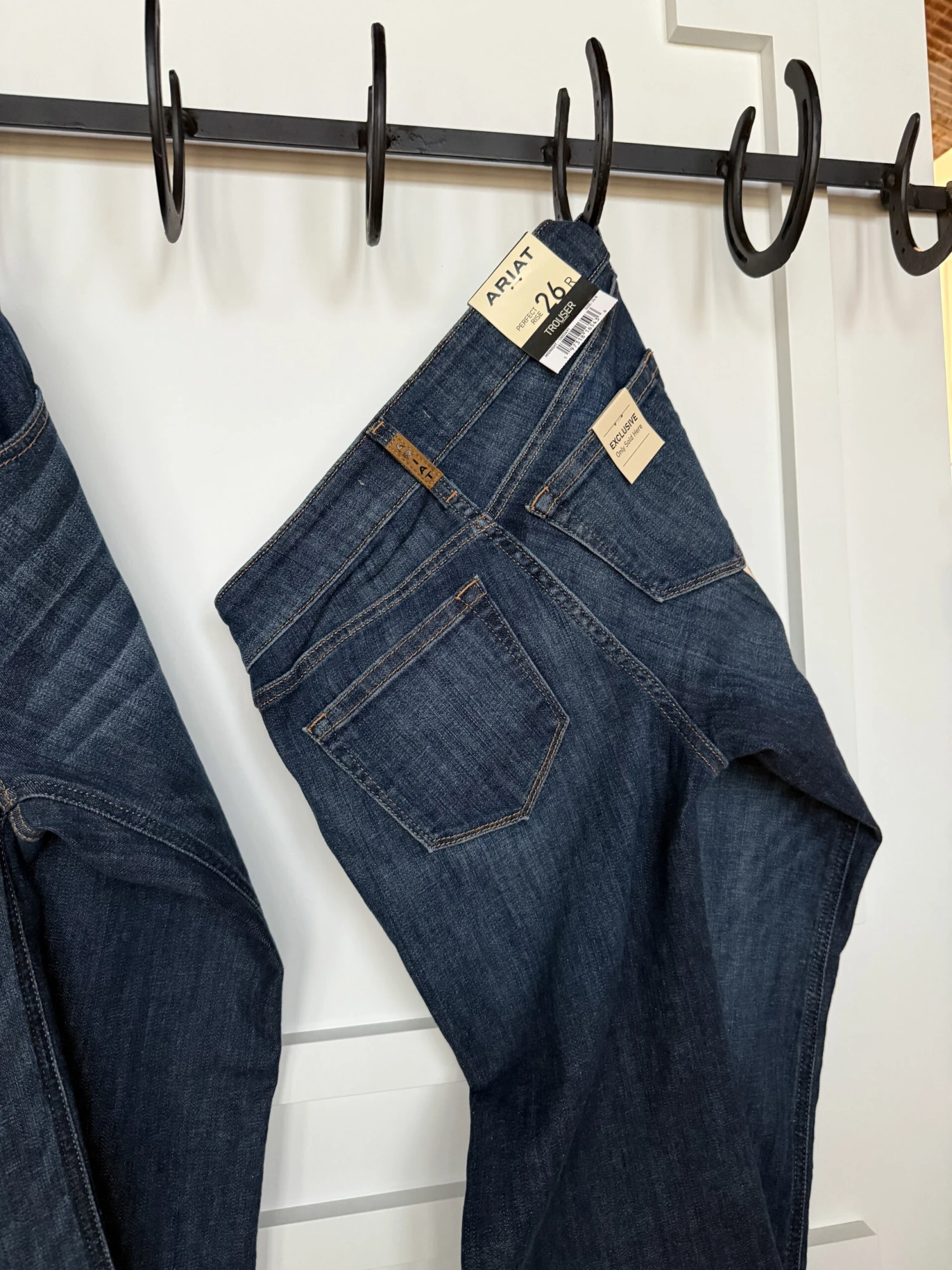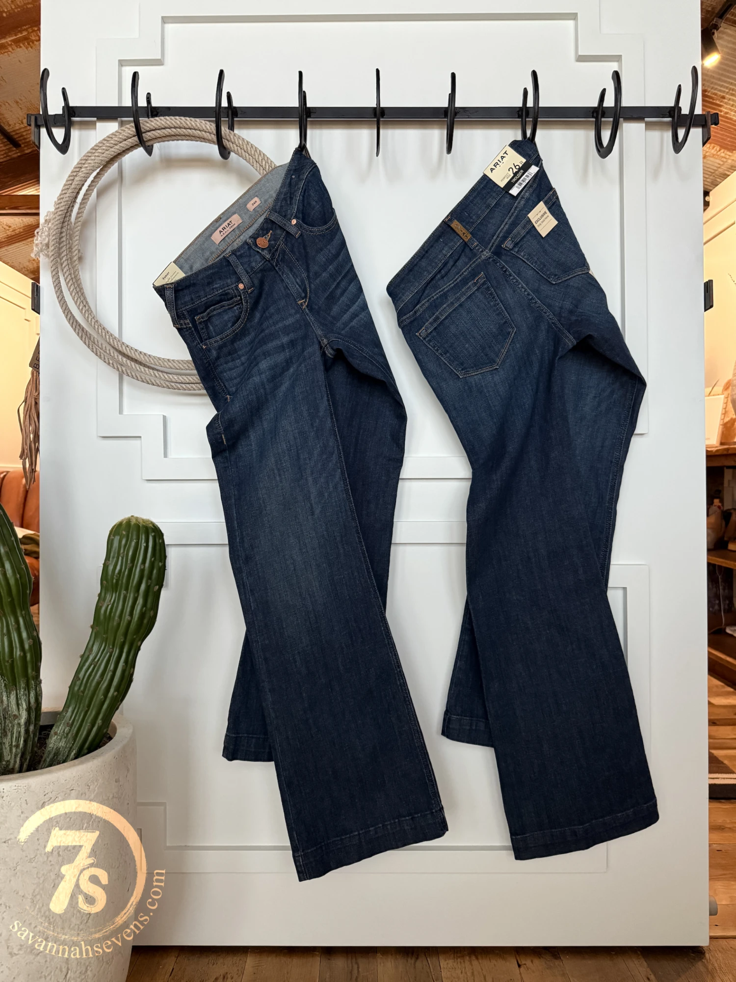 - Savannah Sevens exclusive medium dark wash denim trouser by Ariat.