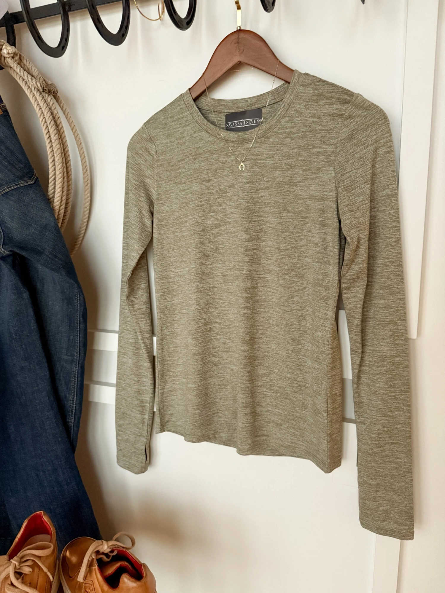 - Heather sage long sleeve top.