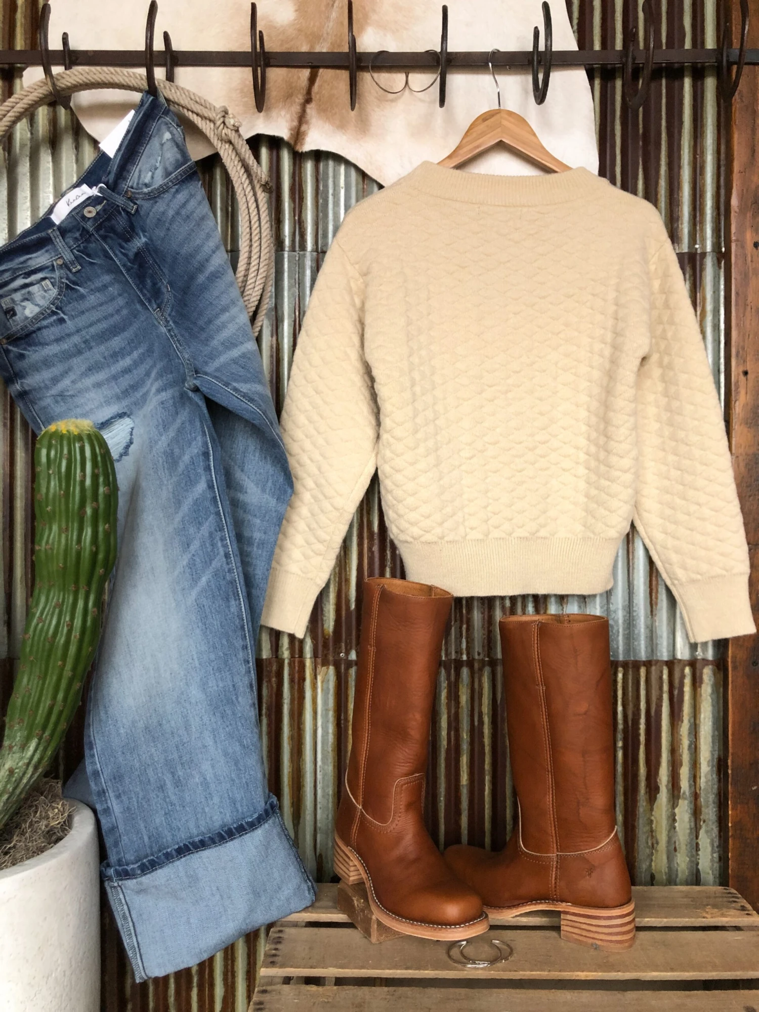 - Shown styled with The Trace High Rise 90’s Wide Leg Jean, The Monahan boots, Montrose Earrings, and Antigo Cuff.