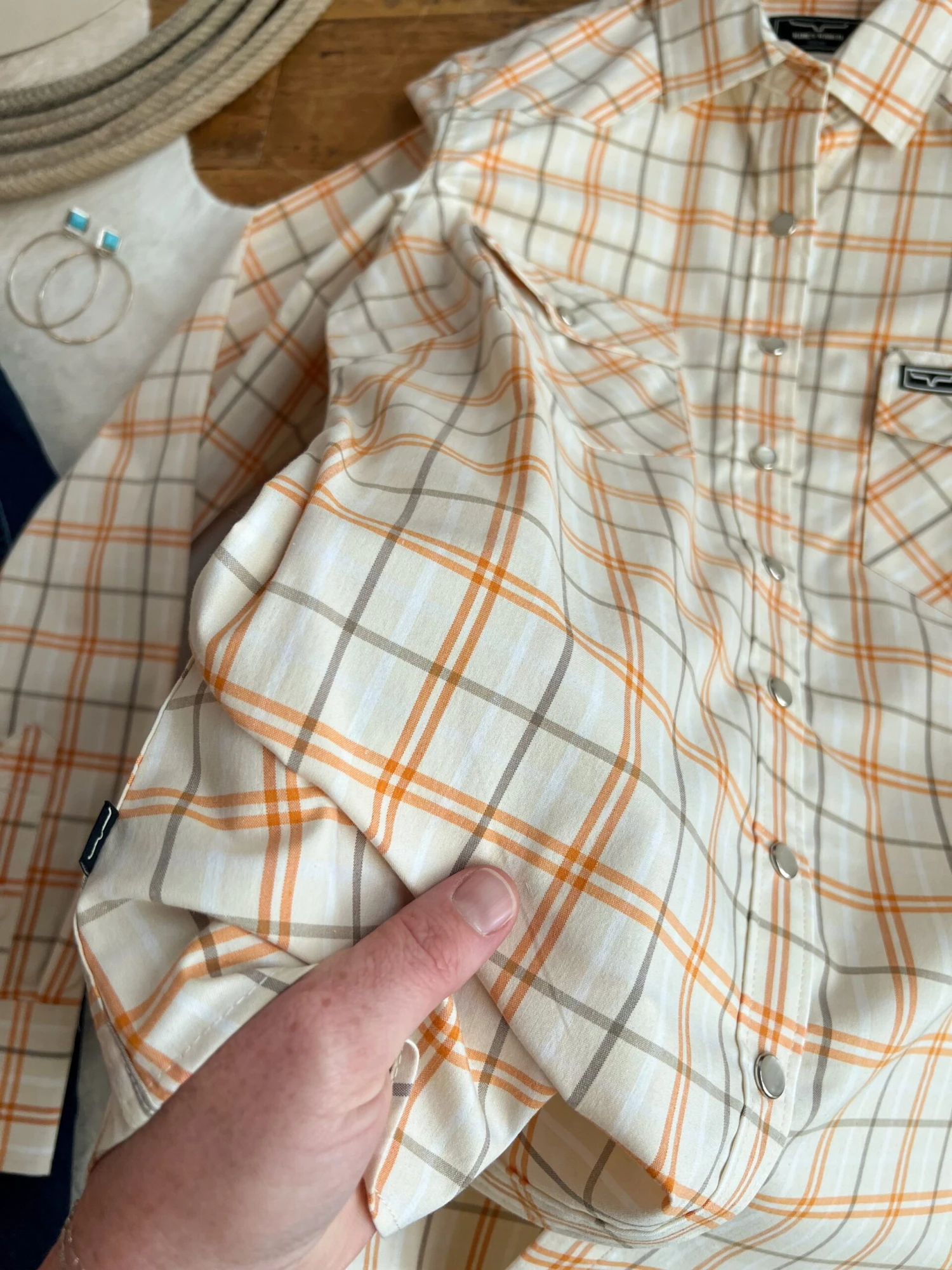 - Plaid long sleeve snap summary top.