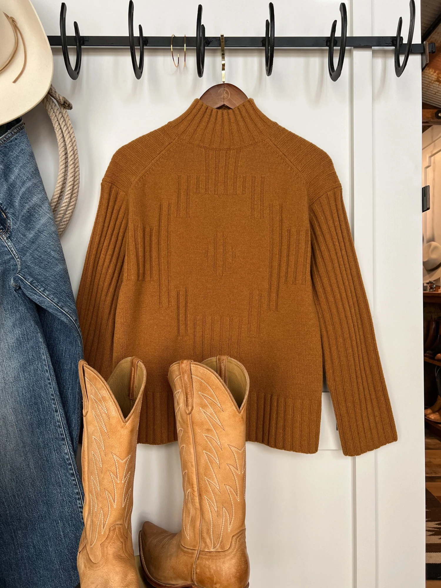 - Pendleton southwest caramel wool sweater.