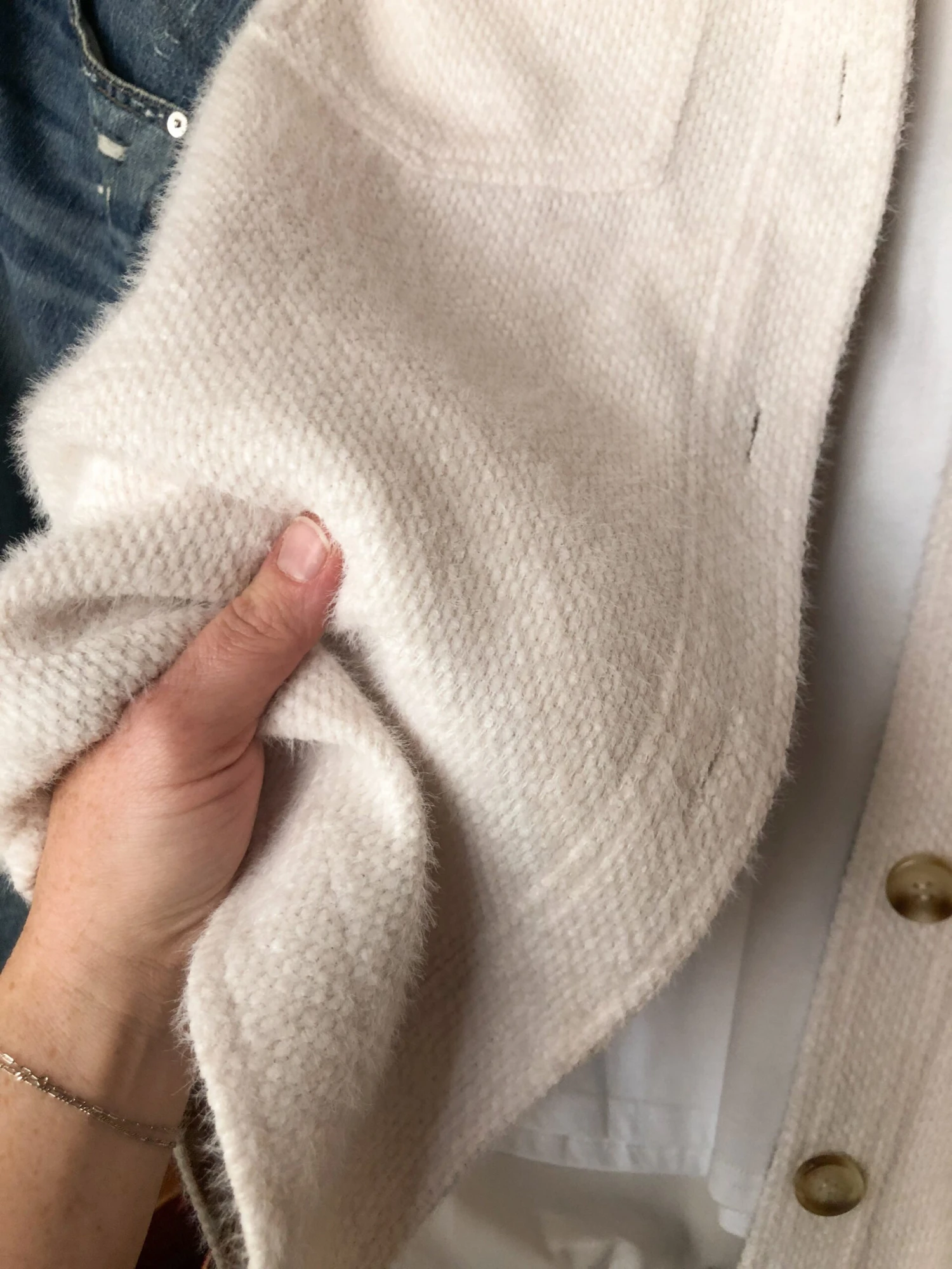 - Off white textured shacket.