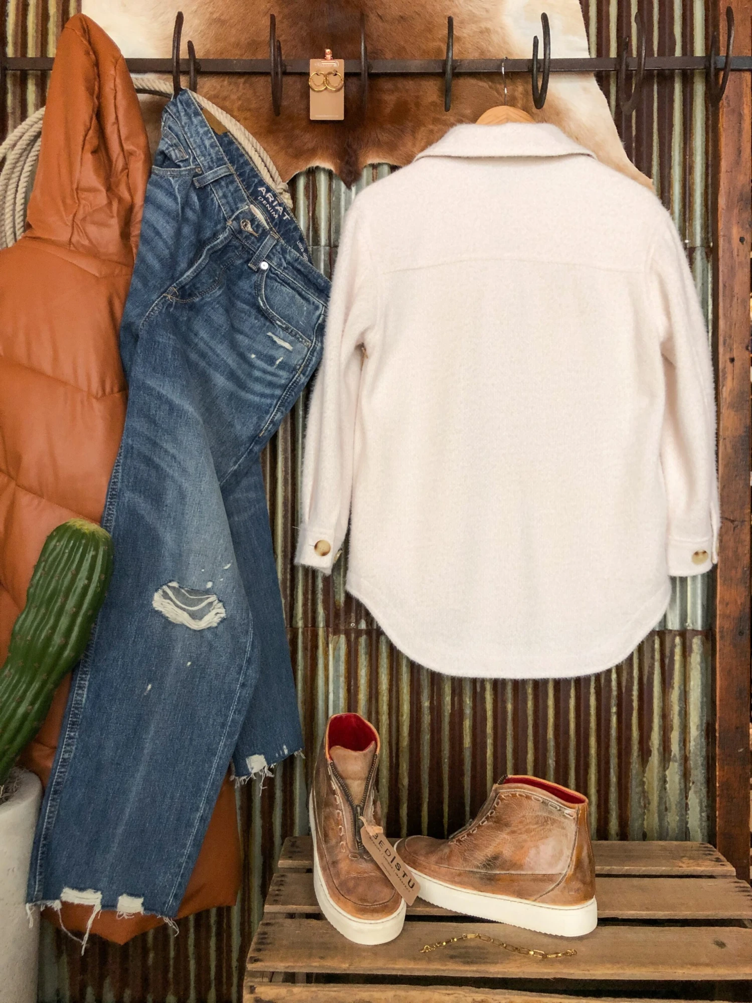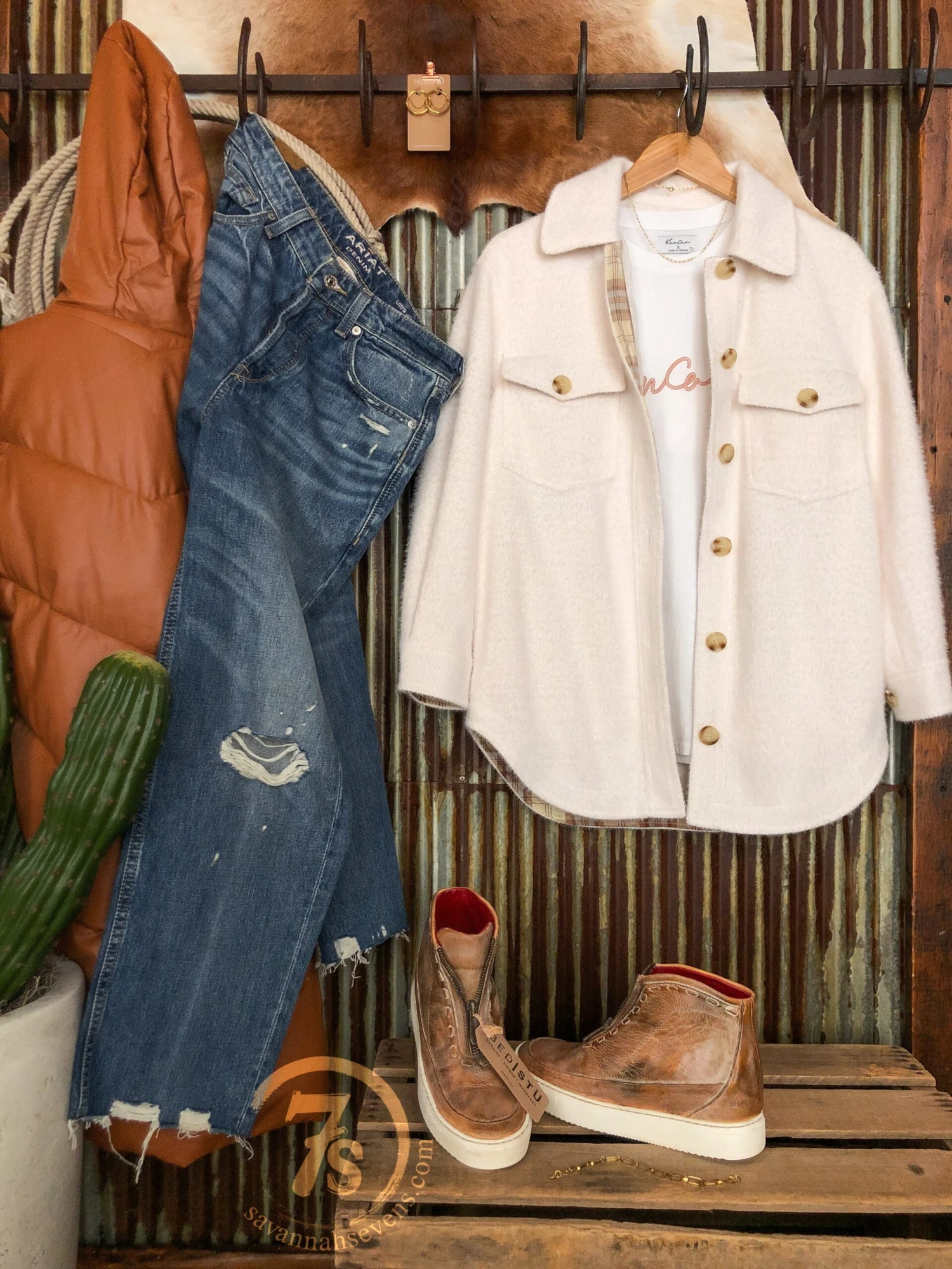 - Shown styled with The Staylee High Rise 90’s Crop Jean, The Kayde shoes, The Totawa long vest, Larkin Bracelet, Aguila Necklace, and Sallis Earrings.