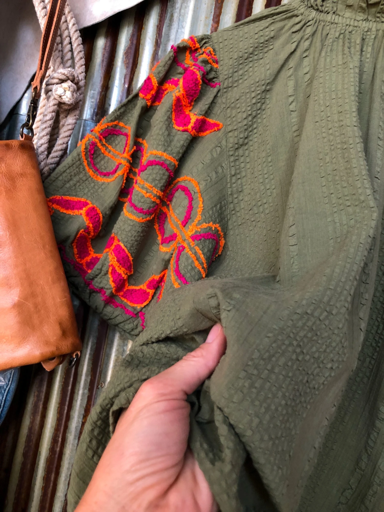 - Gorgeous magenta and orange embroidered sleeves.