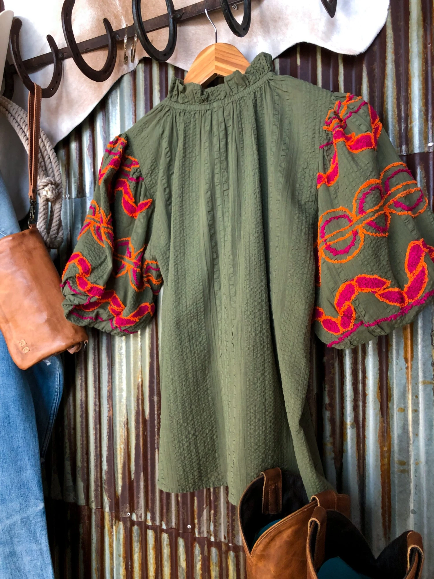 - Sage puff sleeve top.