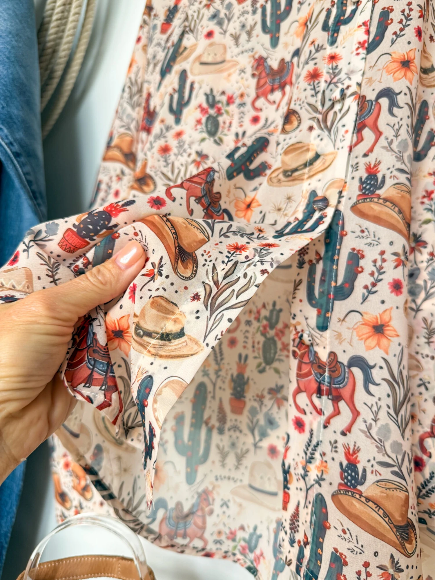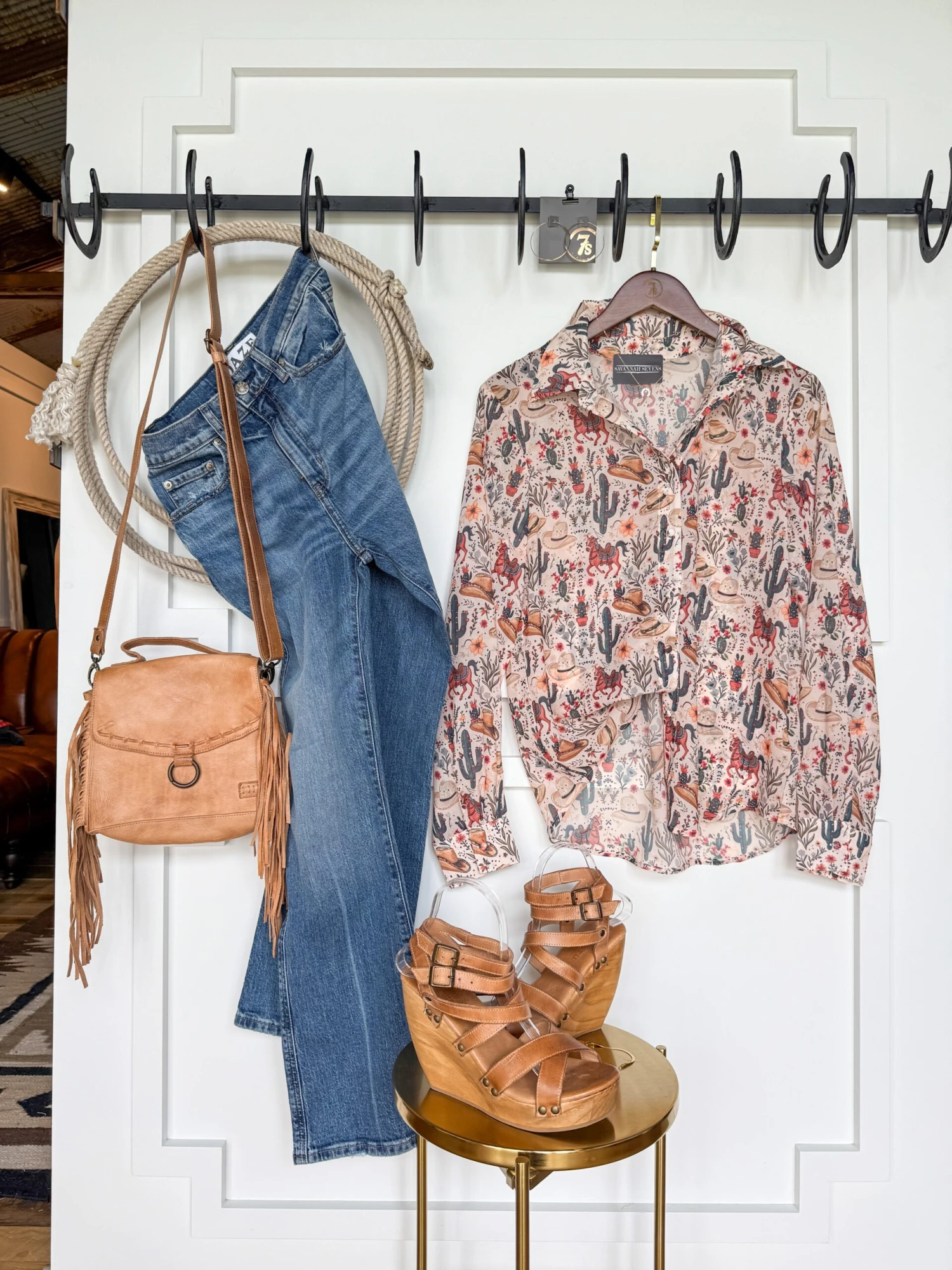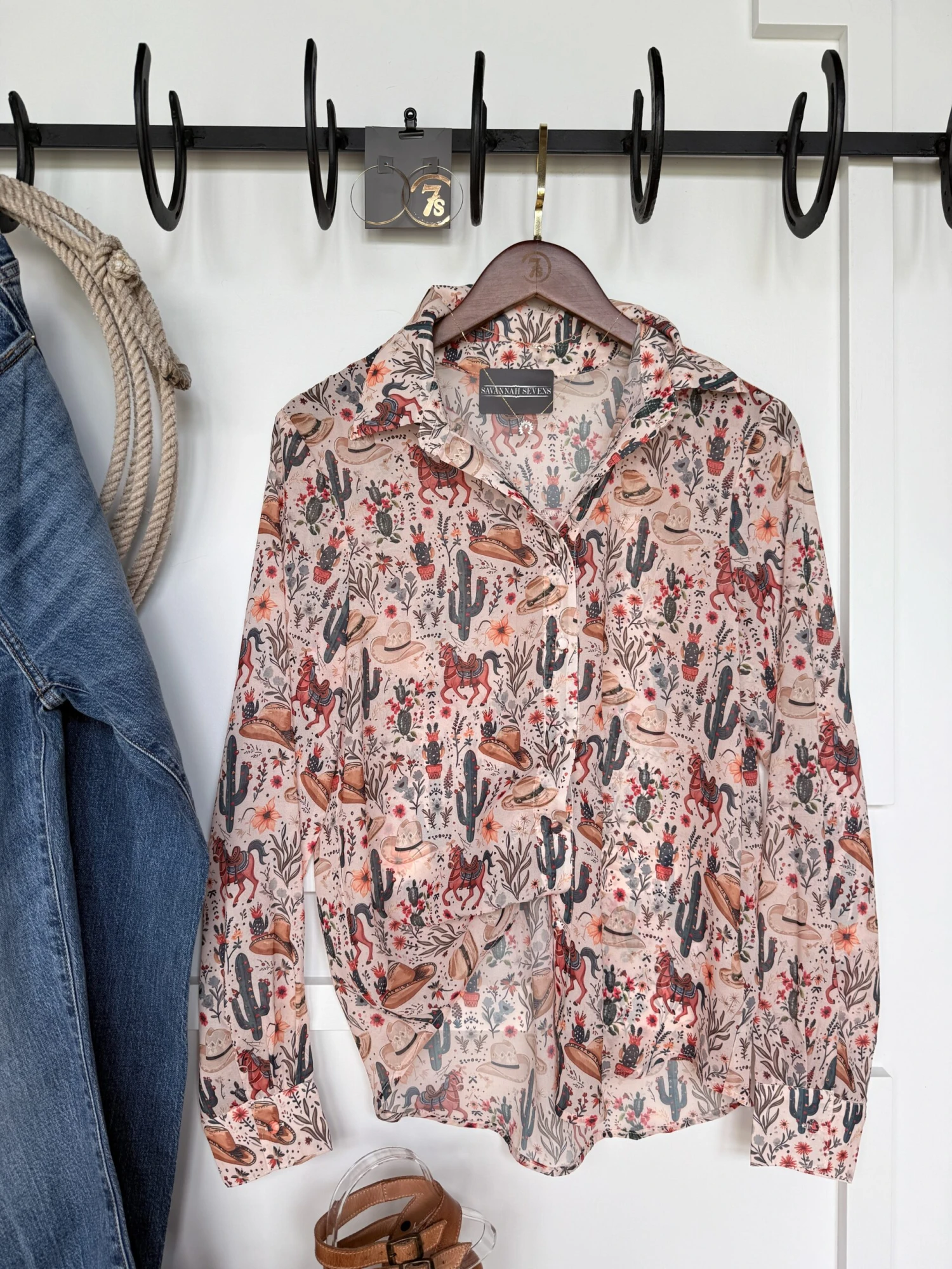 - Natural with western graphics throughout.
