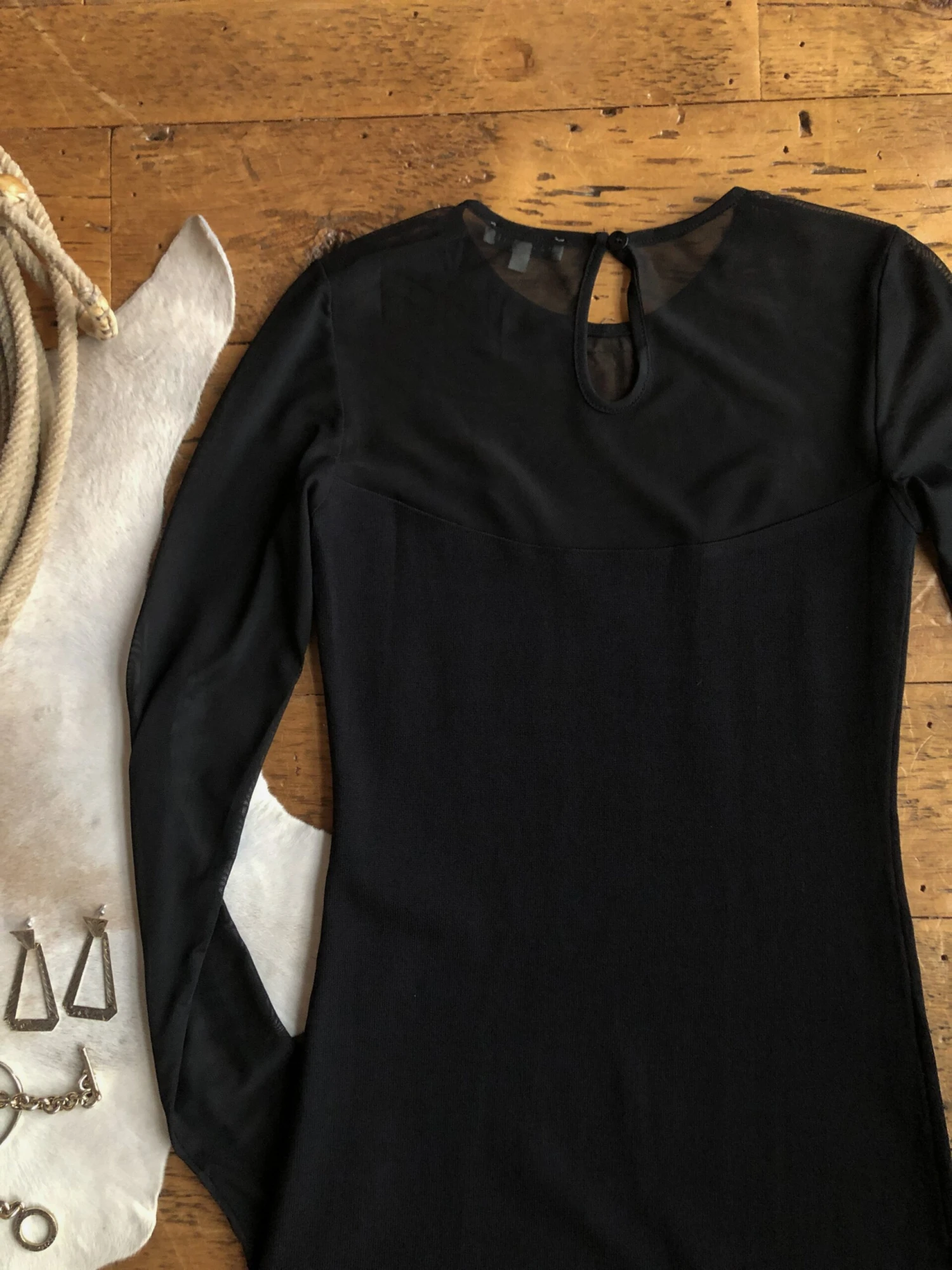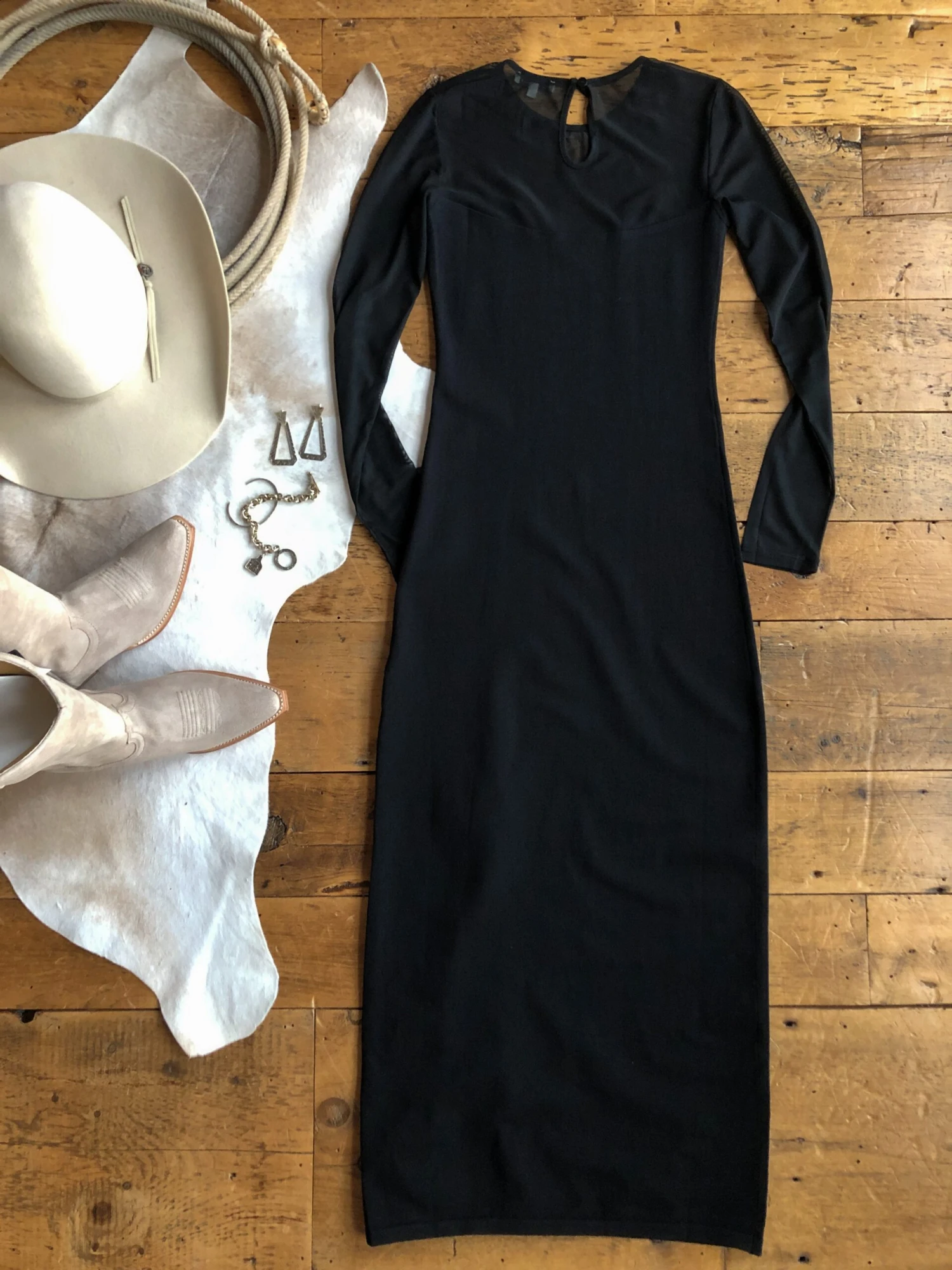 - Black long sleeve midi dress.