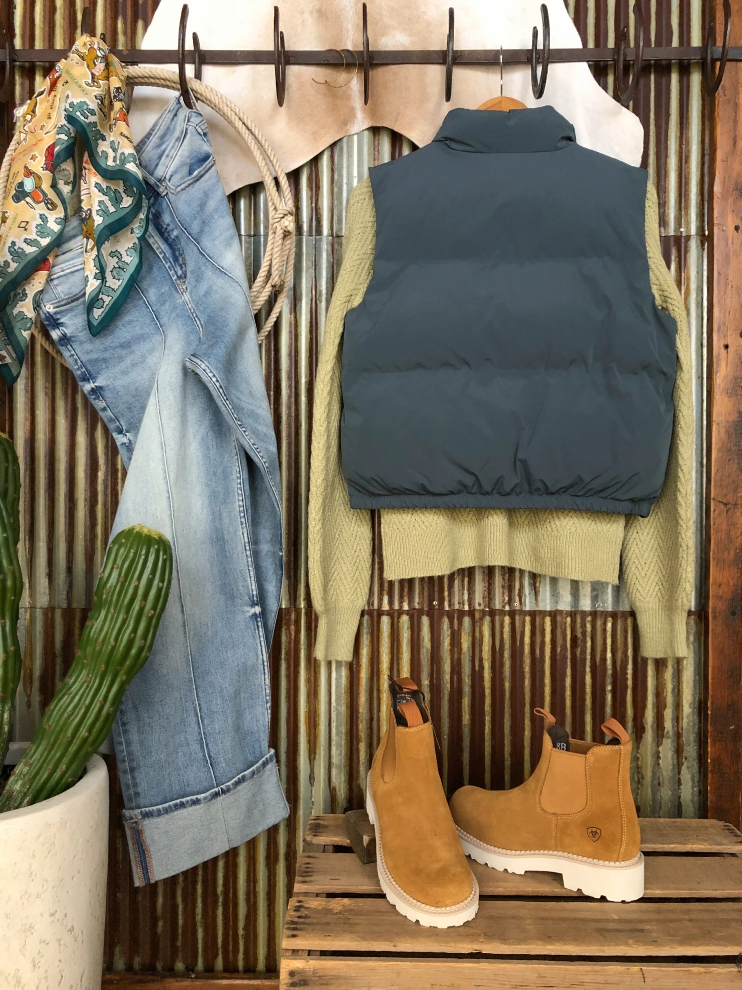 - Blue spruce puffer vest.