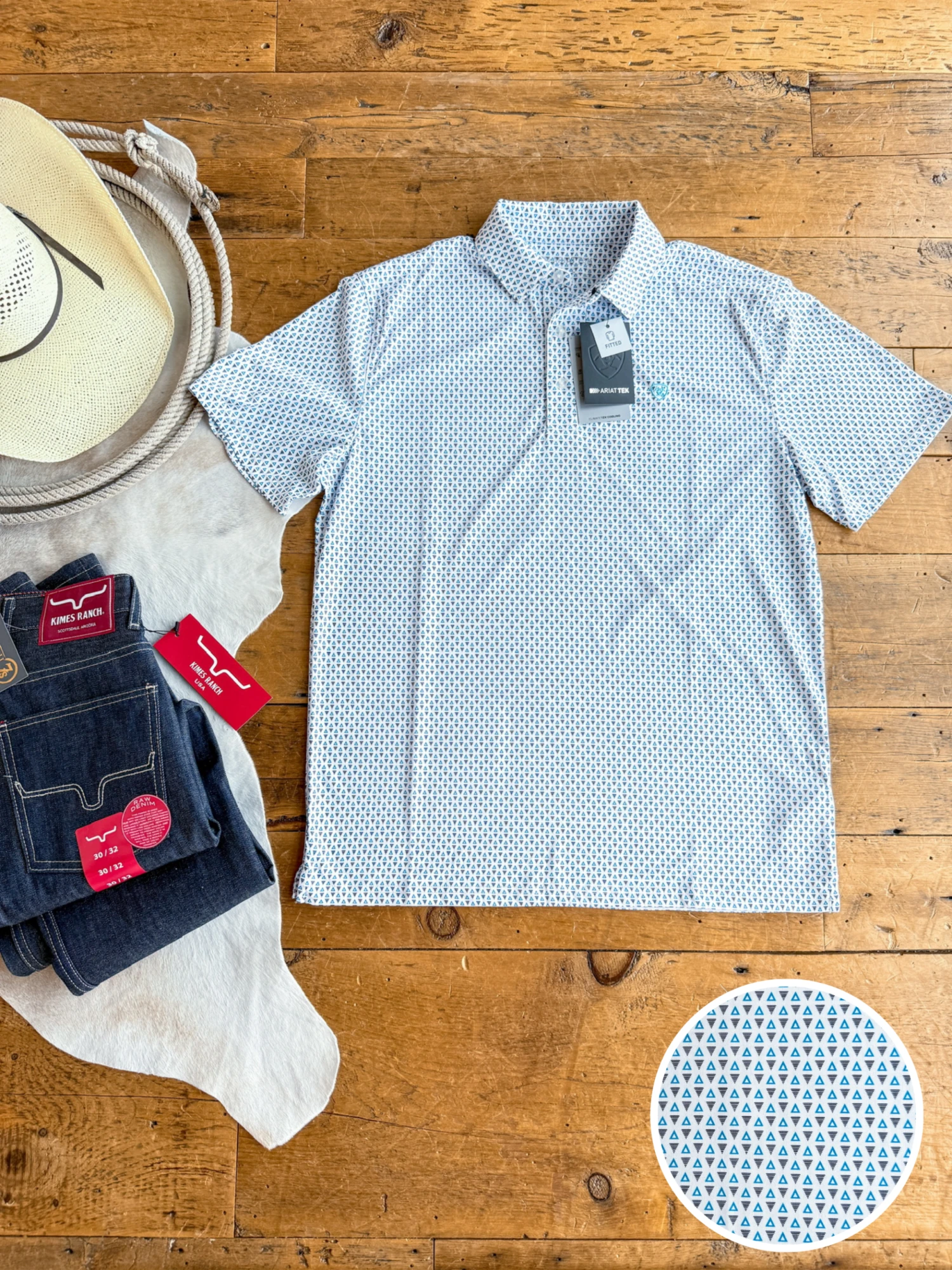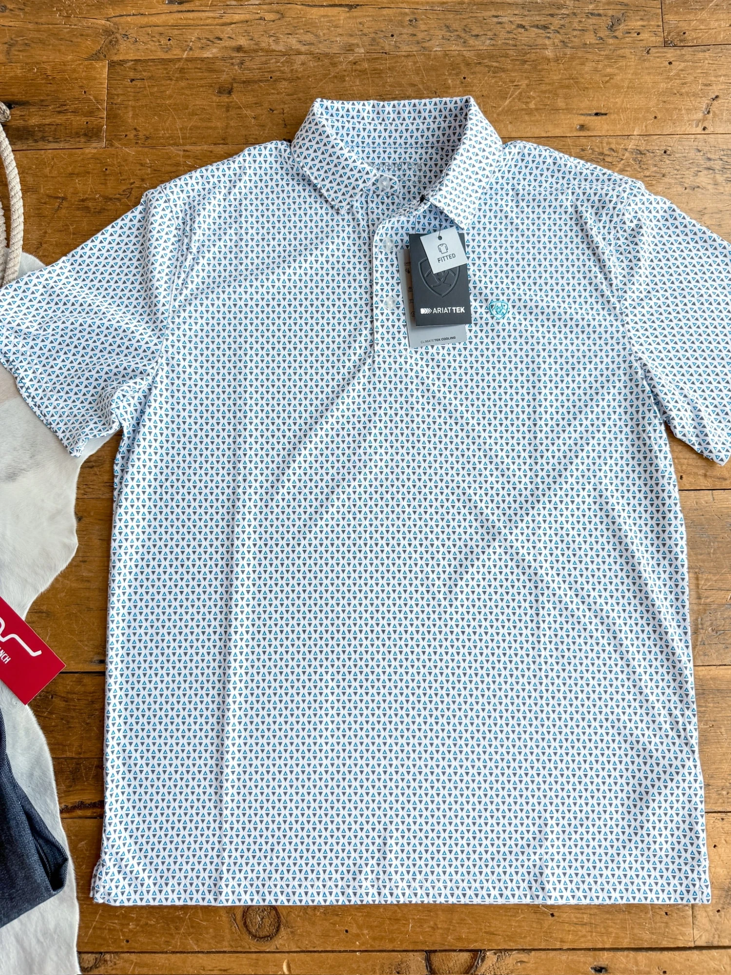 - Men’s AriatTek® short sleeve quarter summary polo.