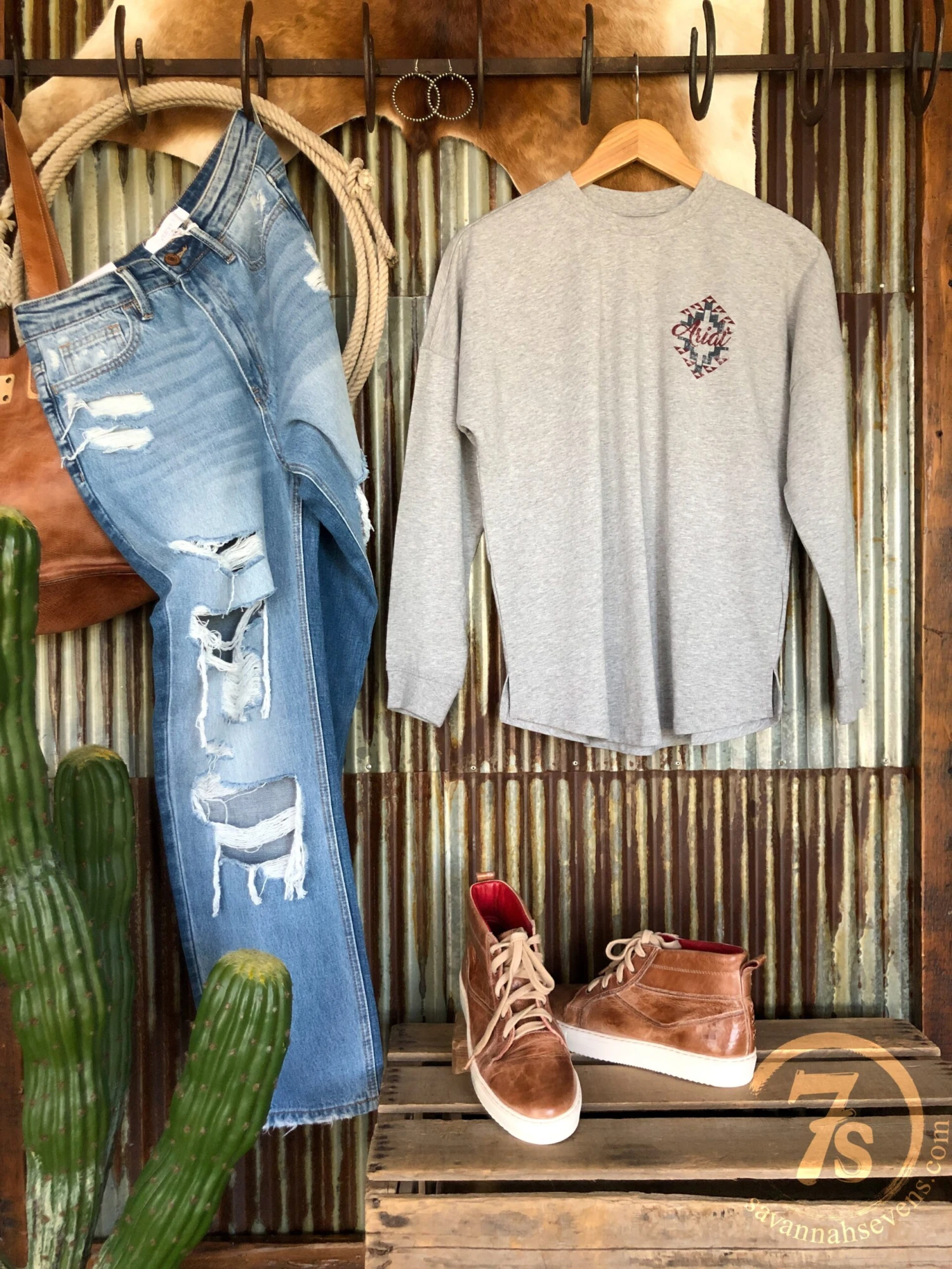 - Shown styled with The Kipp High Rise Straight Crop Jean, The Bowies shoes, Ocilla handbag, and Lacona Earrings.