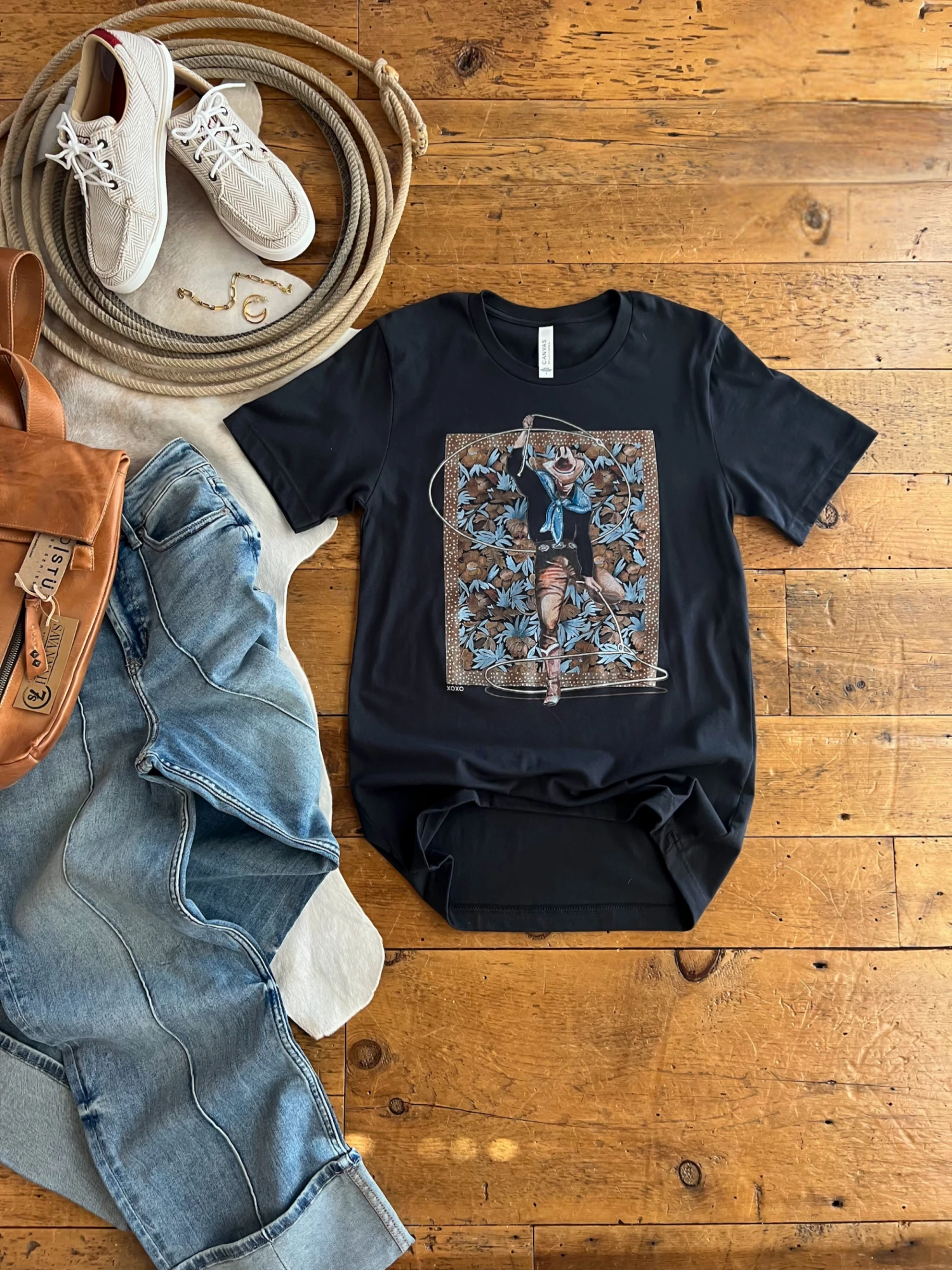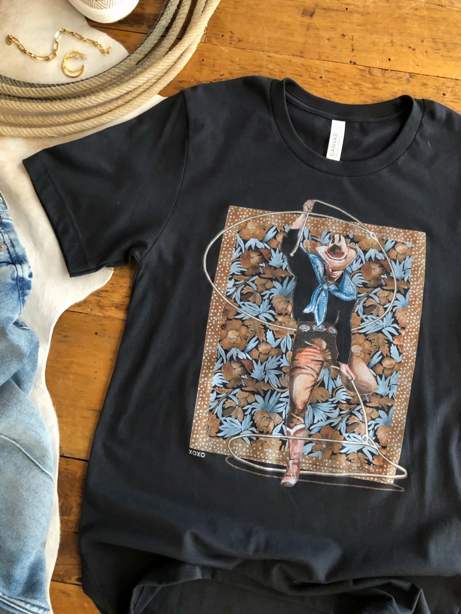- Ropin’ cowboy western floral graphics.
