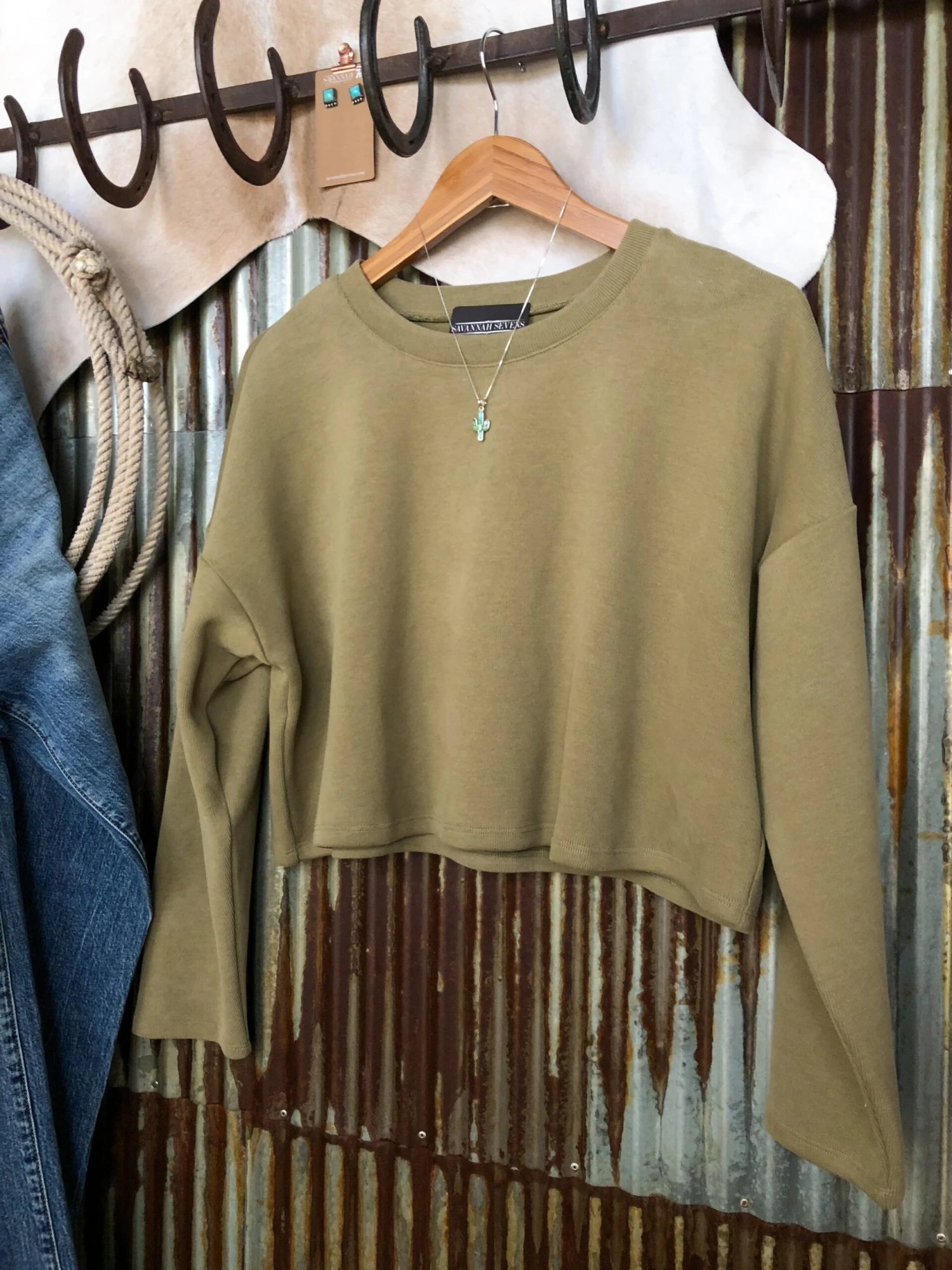 - Sage ivy long sleeve crop top.