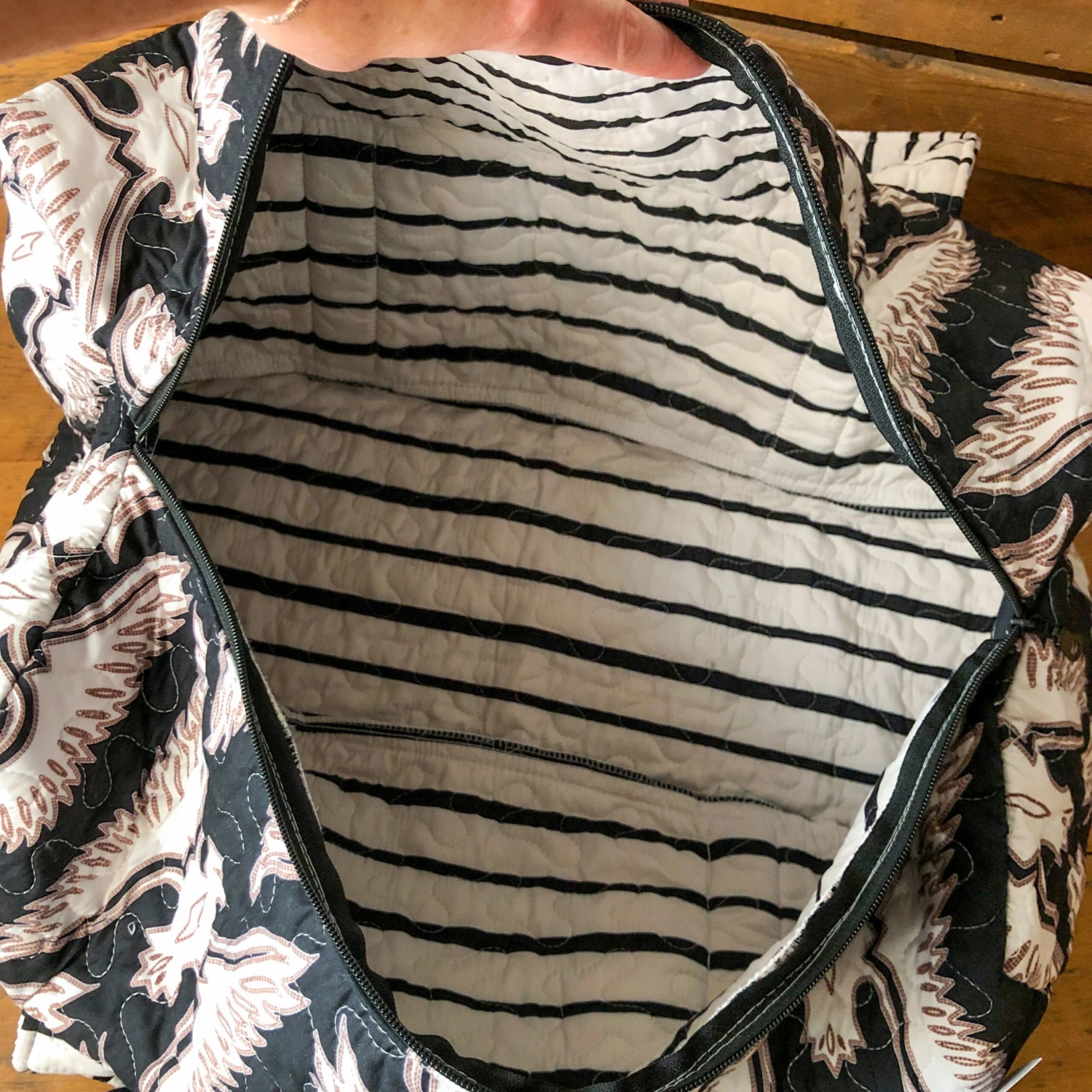 - Interior striped pattern.