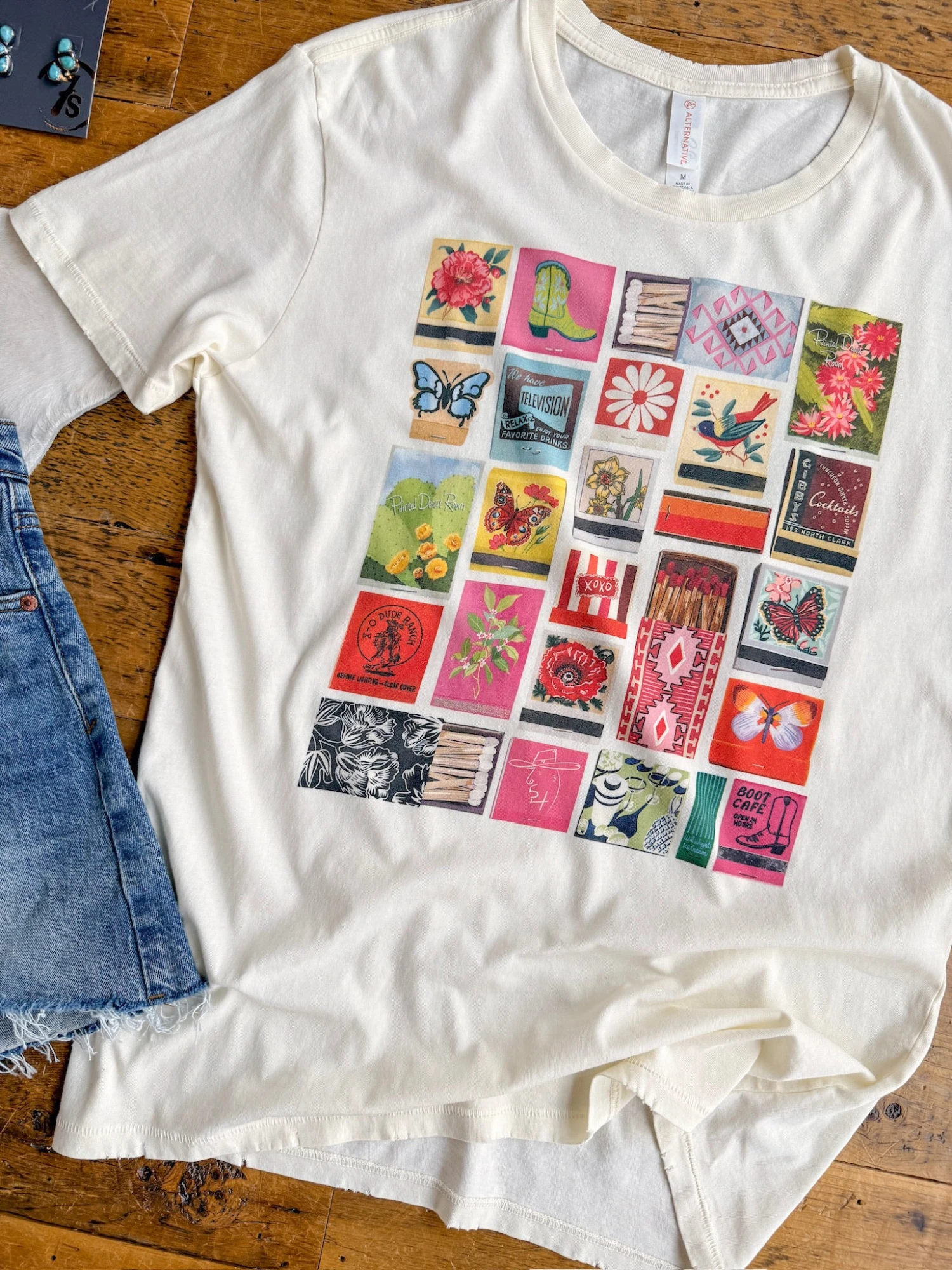 - Every single matchbook you see here was carefully drawn out to make this one of a kind graphic on vintage ivory.