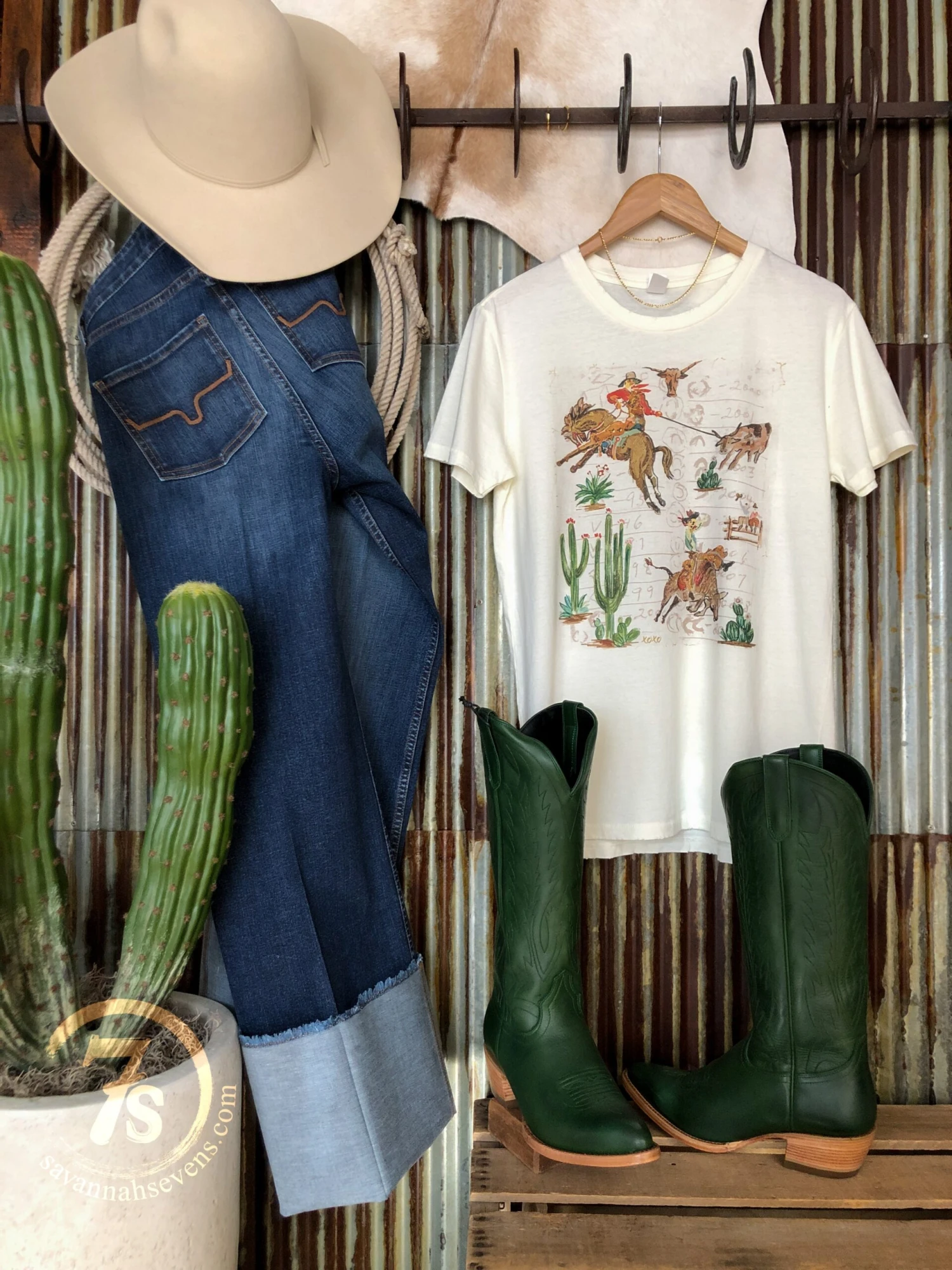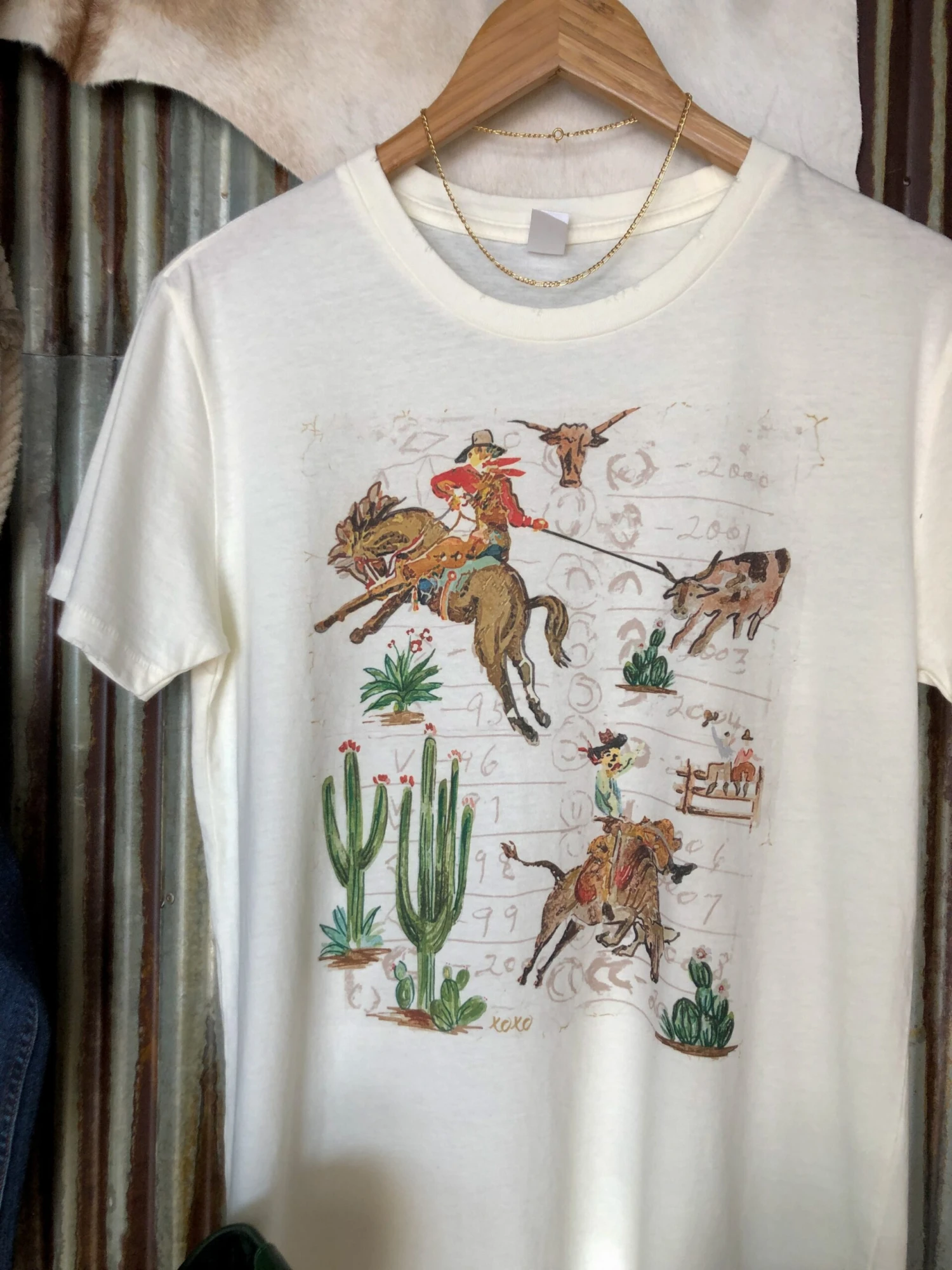 - Ivory hand drawn western graphic tee.