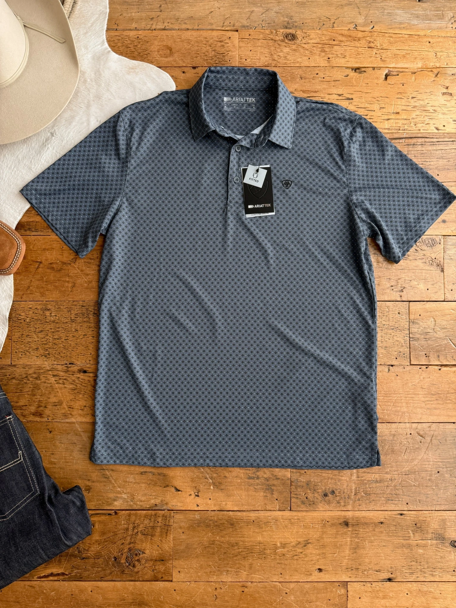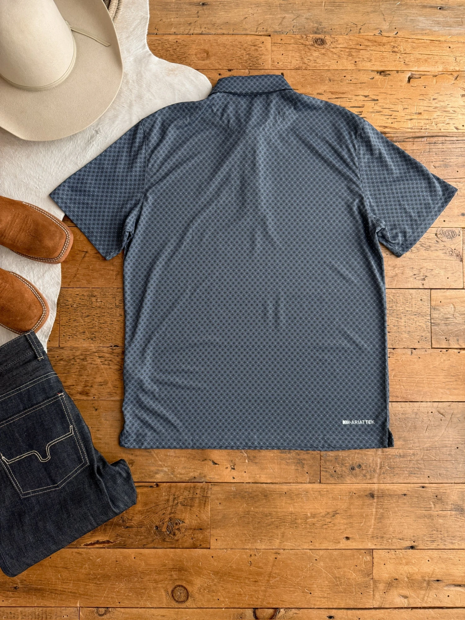 - Men’s AriatTek® graphic quarter summary short sleeve shirt.