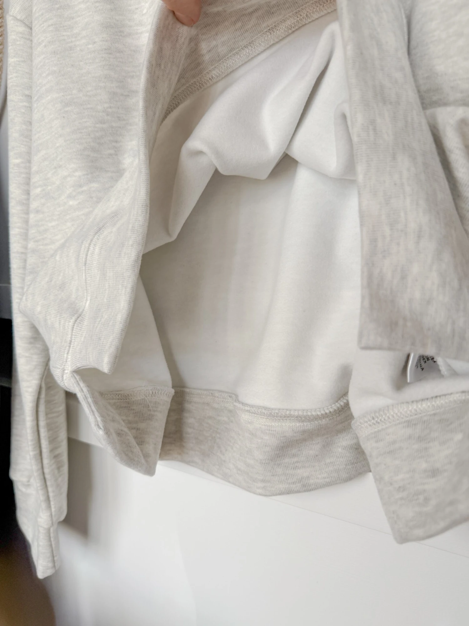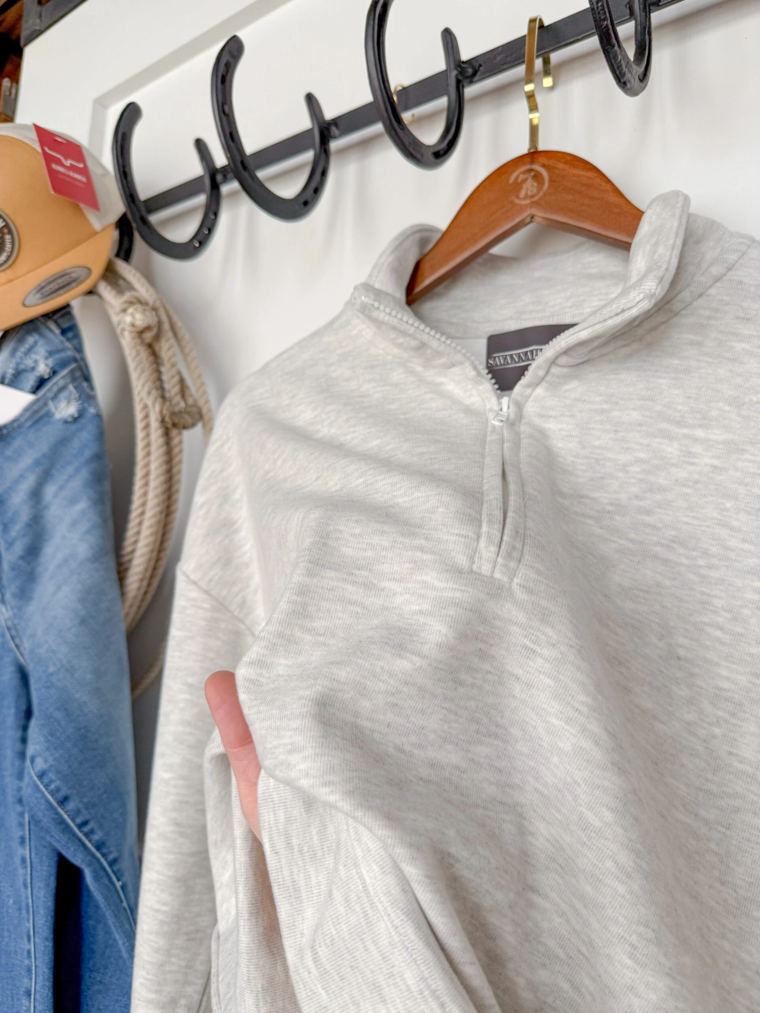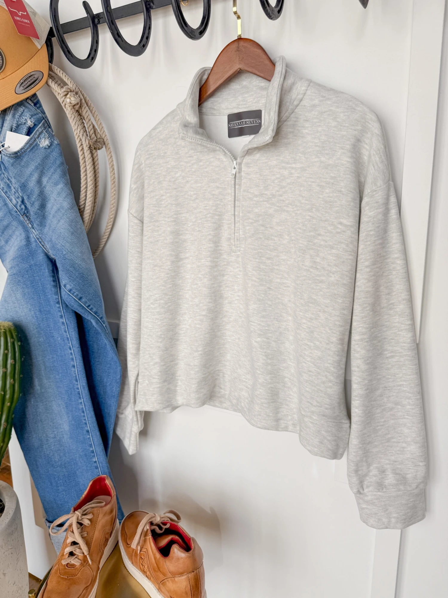 - Light heather grey quarter zip pullover.