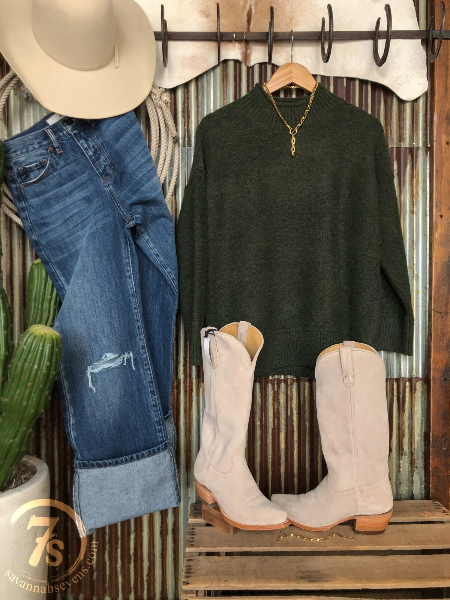 - Shown styled with The Stran High Rise 90’s Wide Leg Jean, The Shiloh boots, Larkin Braclet, Dovray Necklace, and Posen Earrings.