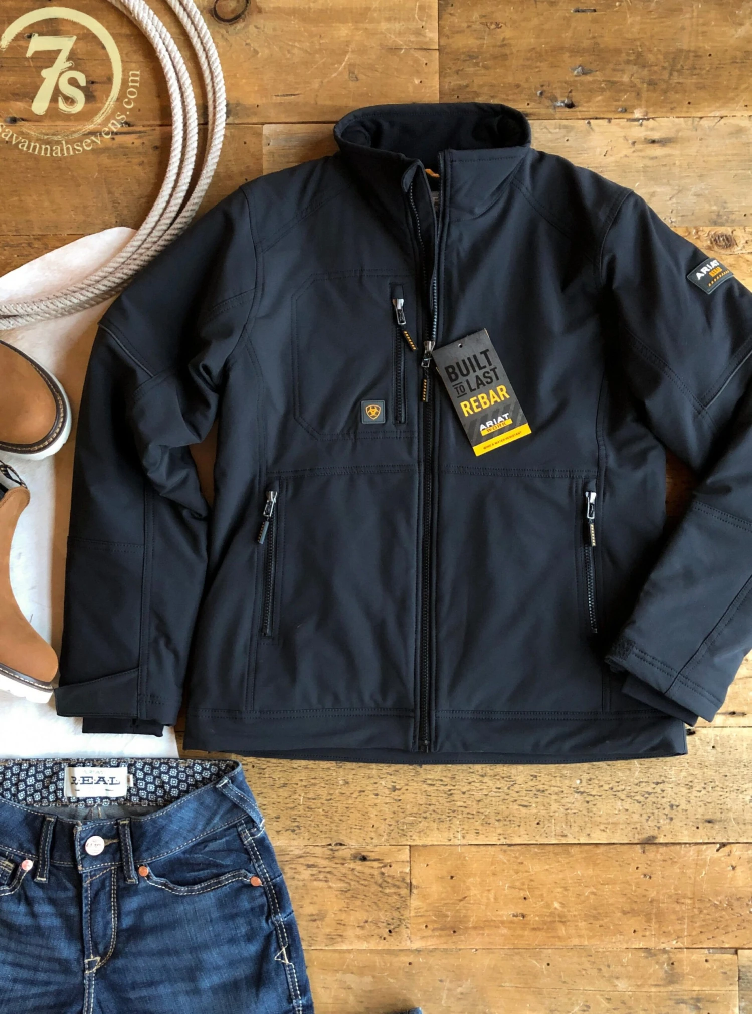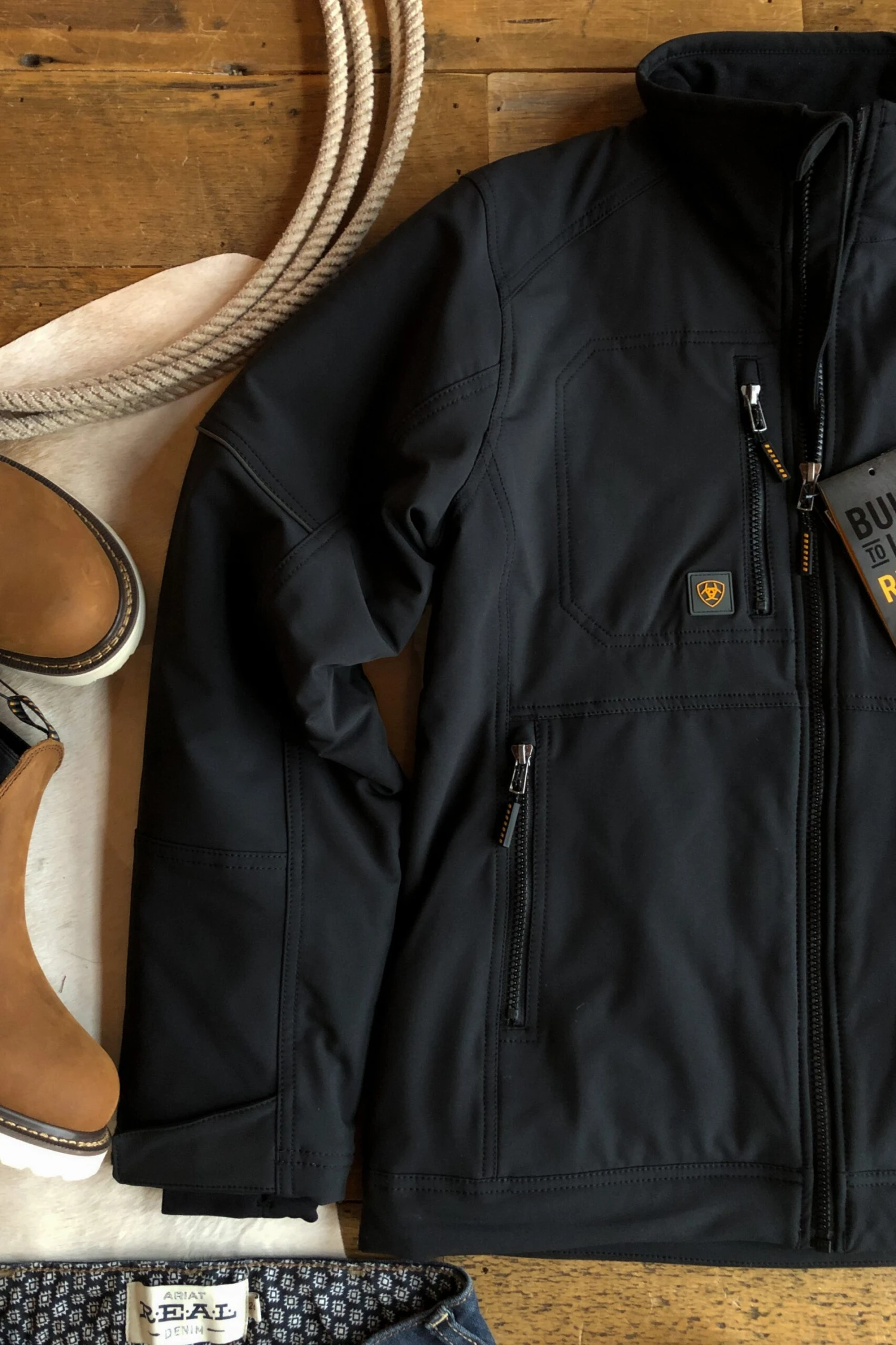 - Black Ariat Rebar® insulated full zip jacket.