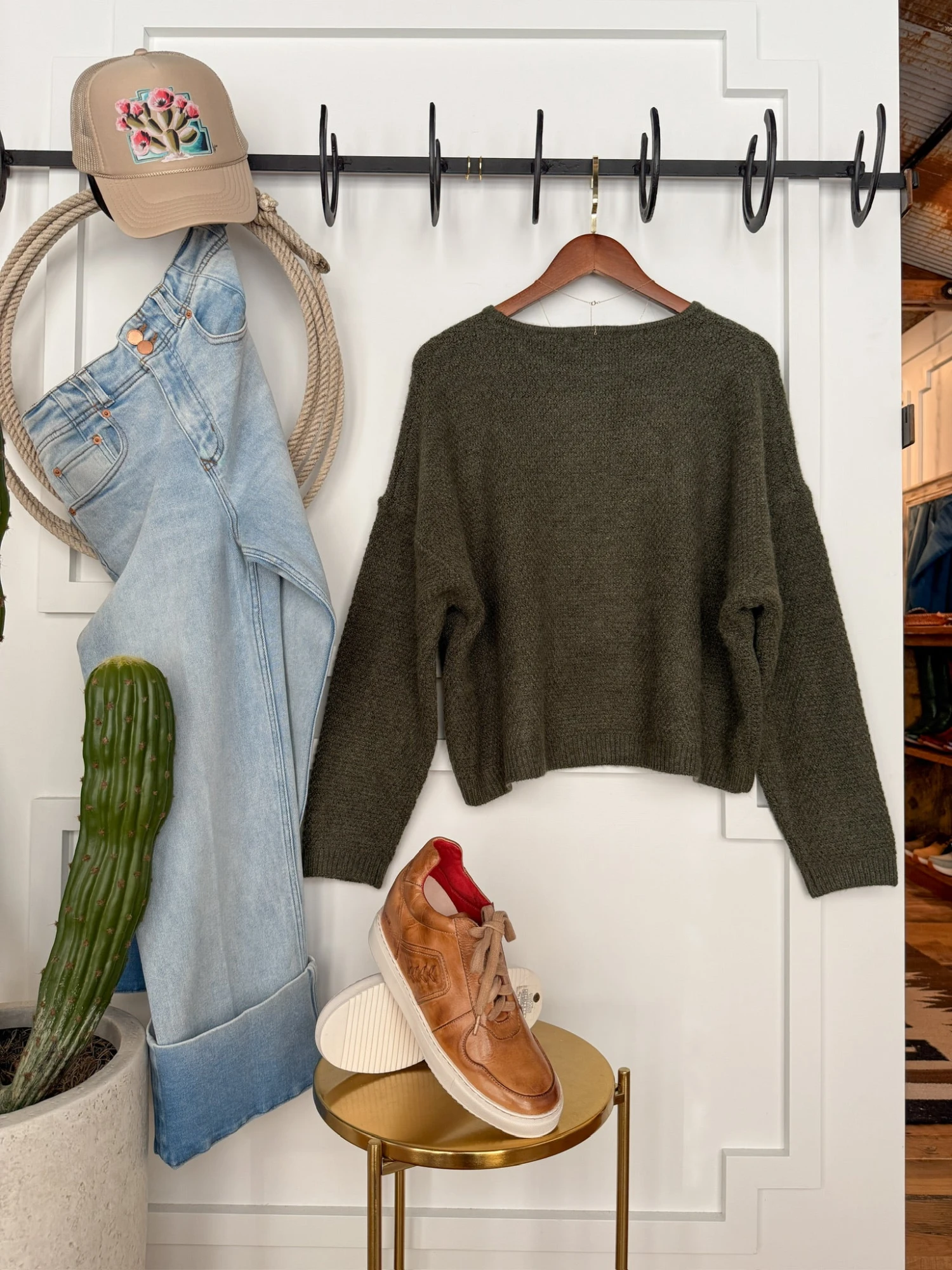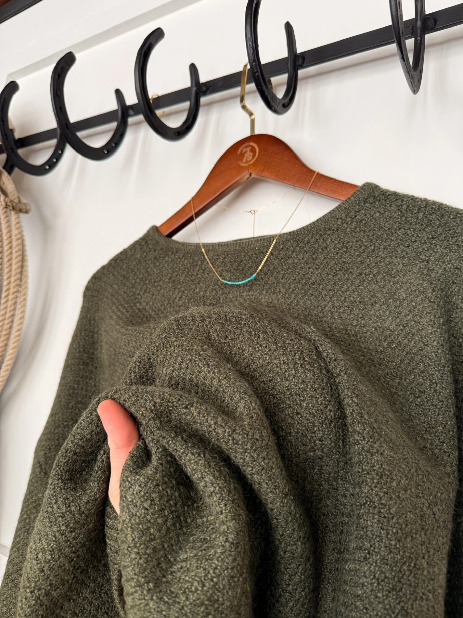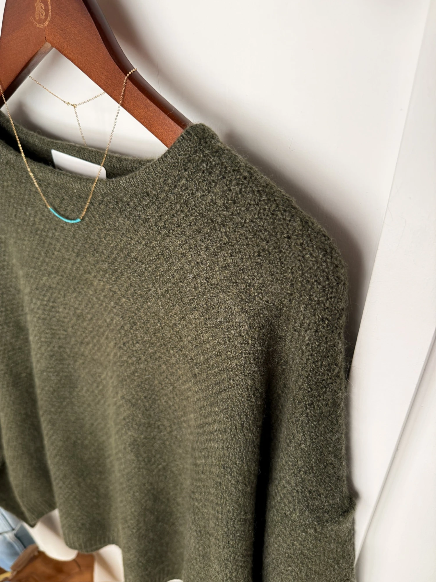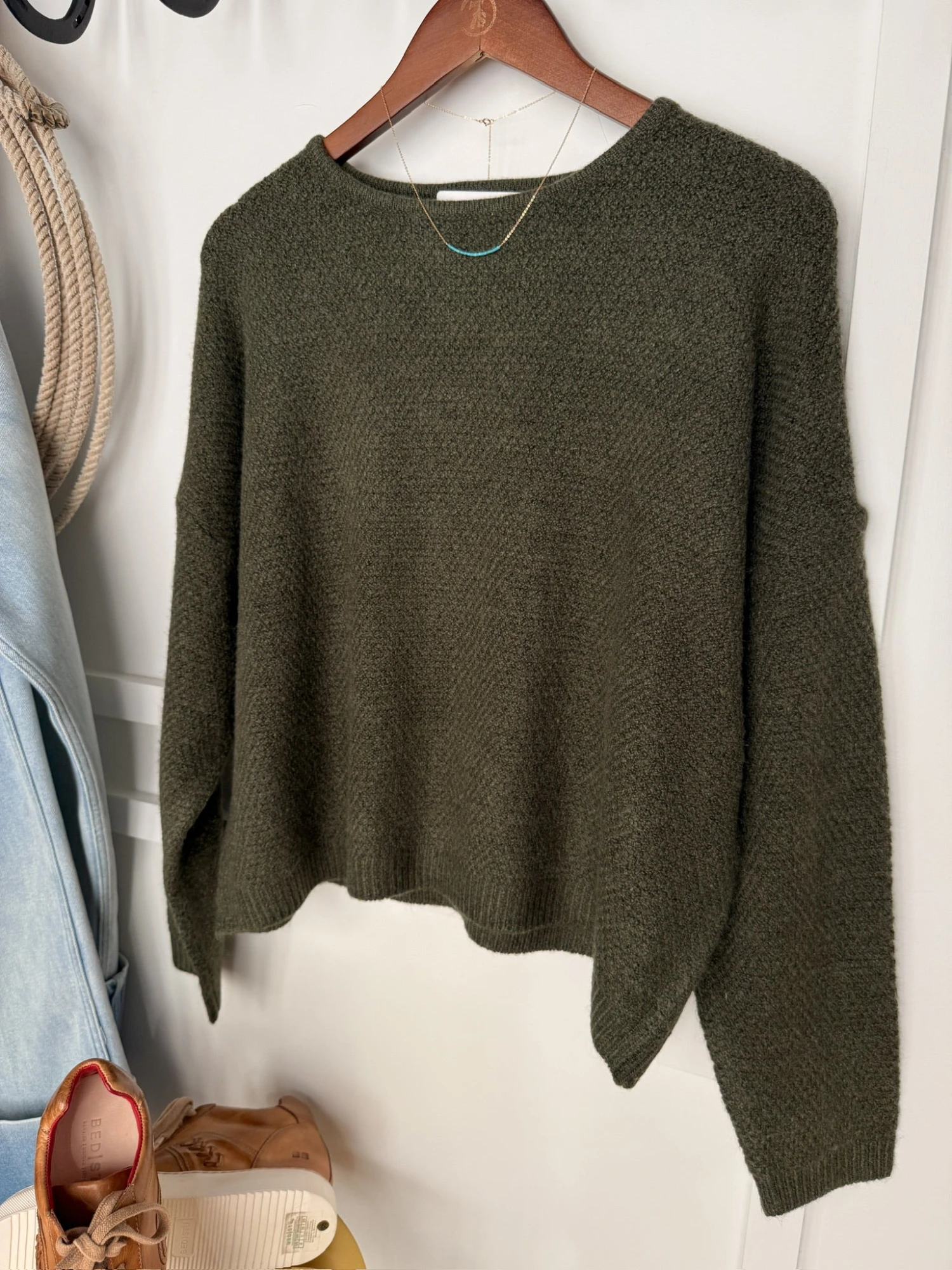 - Olive long sleeve wool blend oversized top.