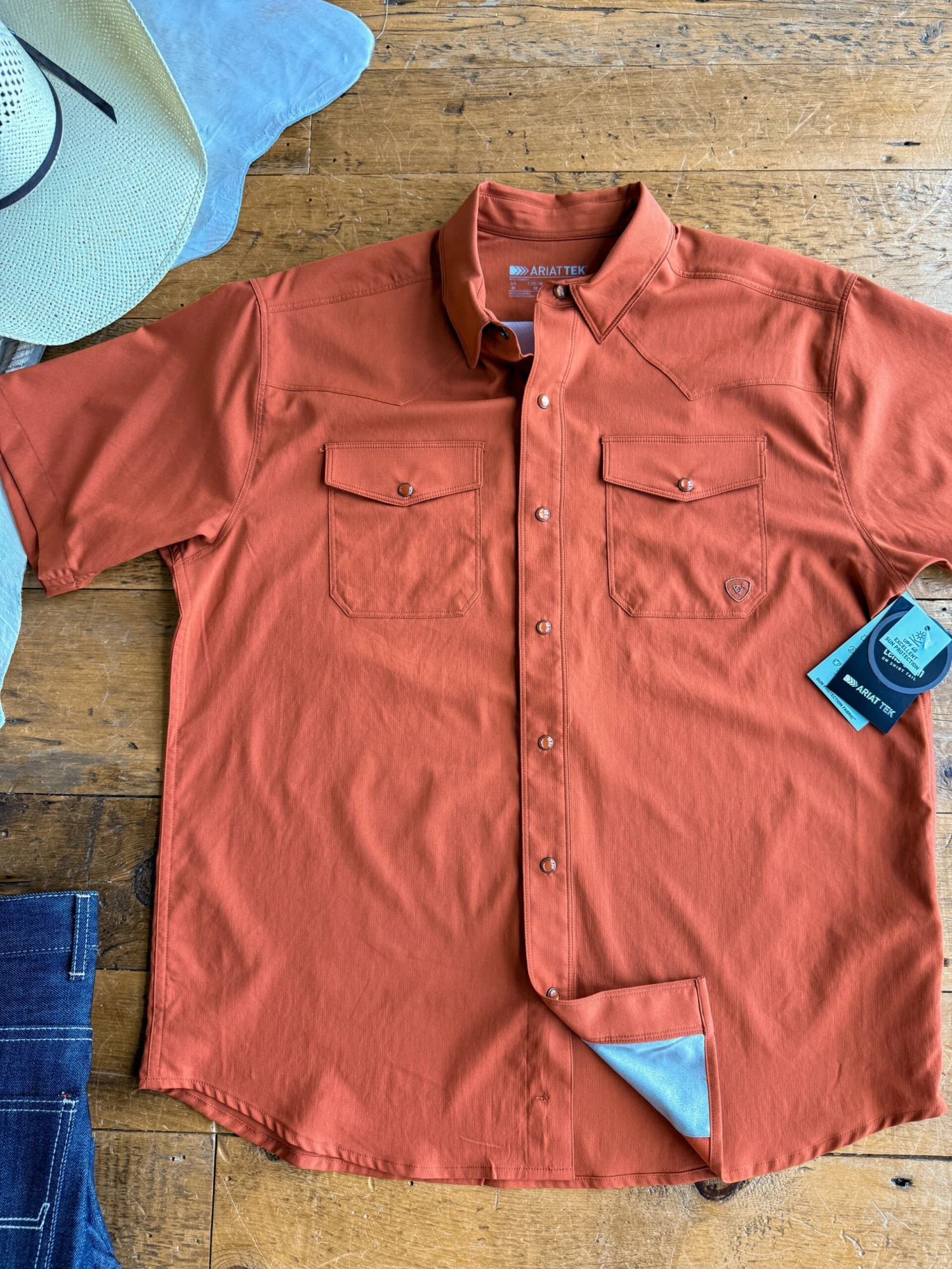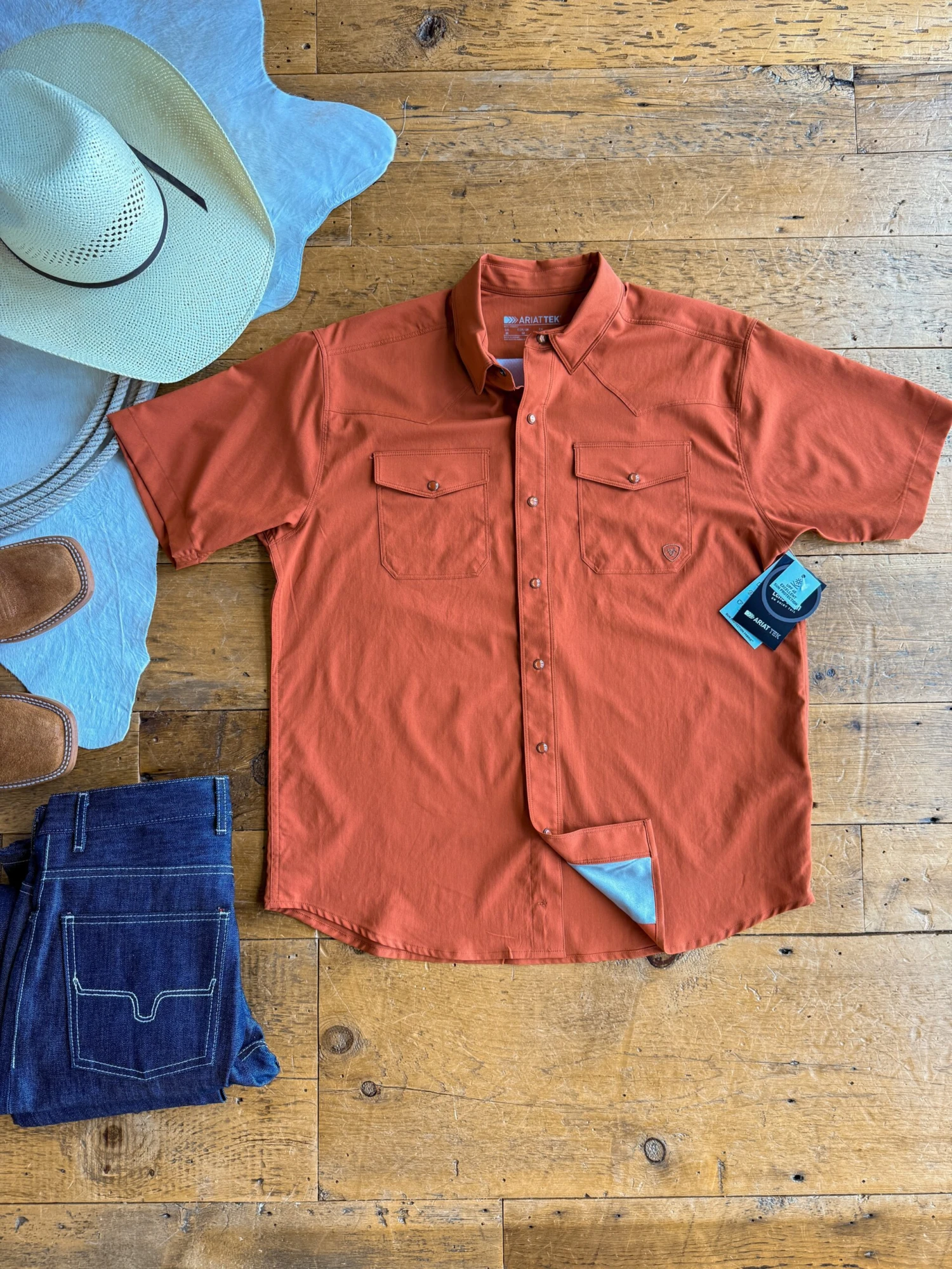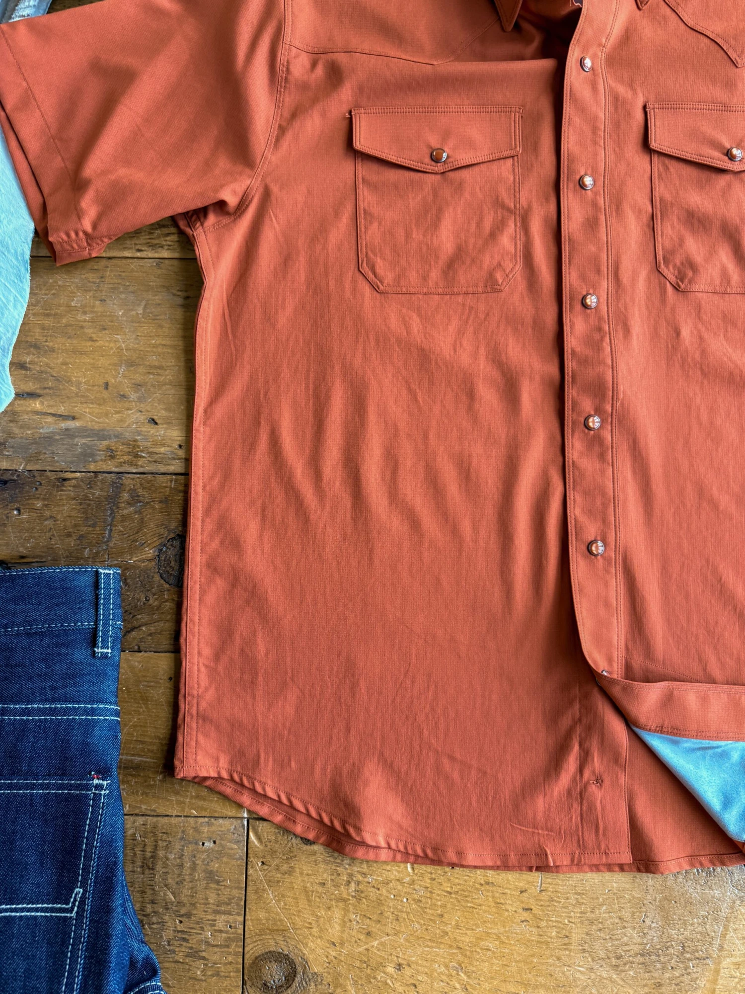 - Pearl snap chest pockets.
