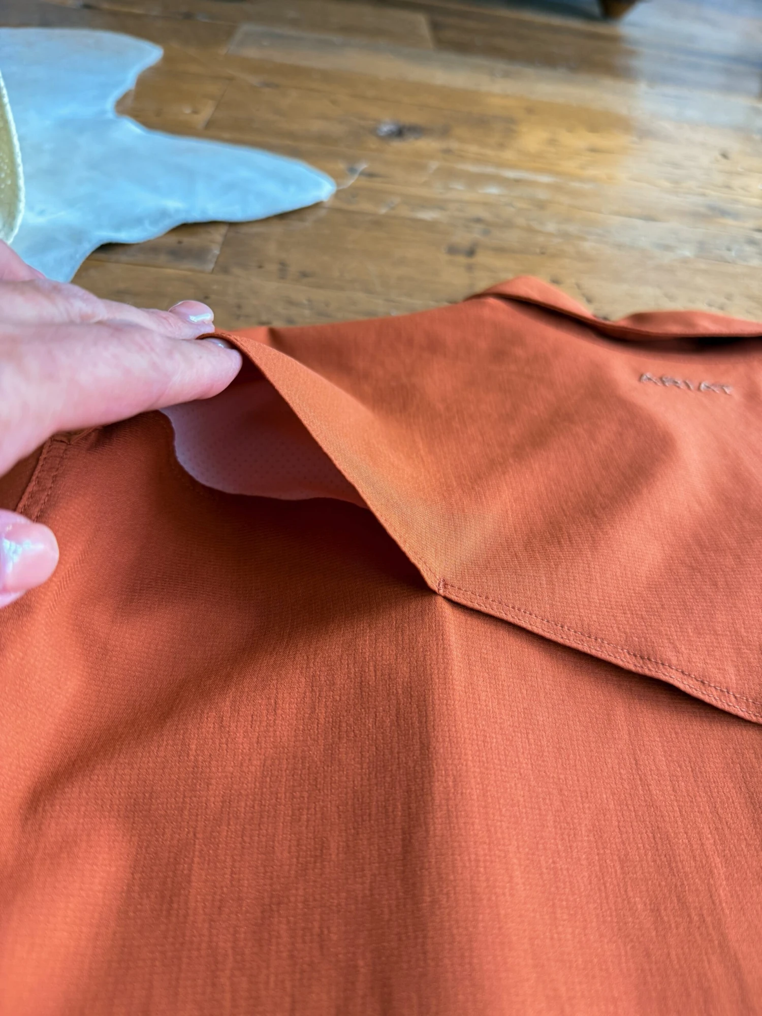 - Men’s ClimateTek burnt clay short sleeve summary up shirt.