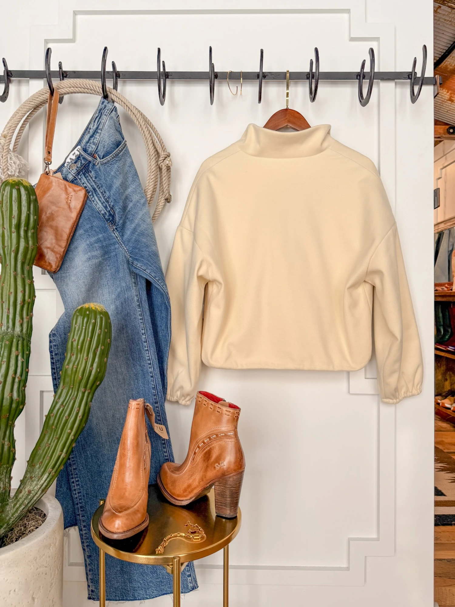 - Cream full zip jacket.