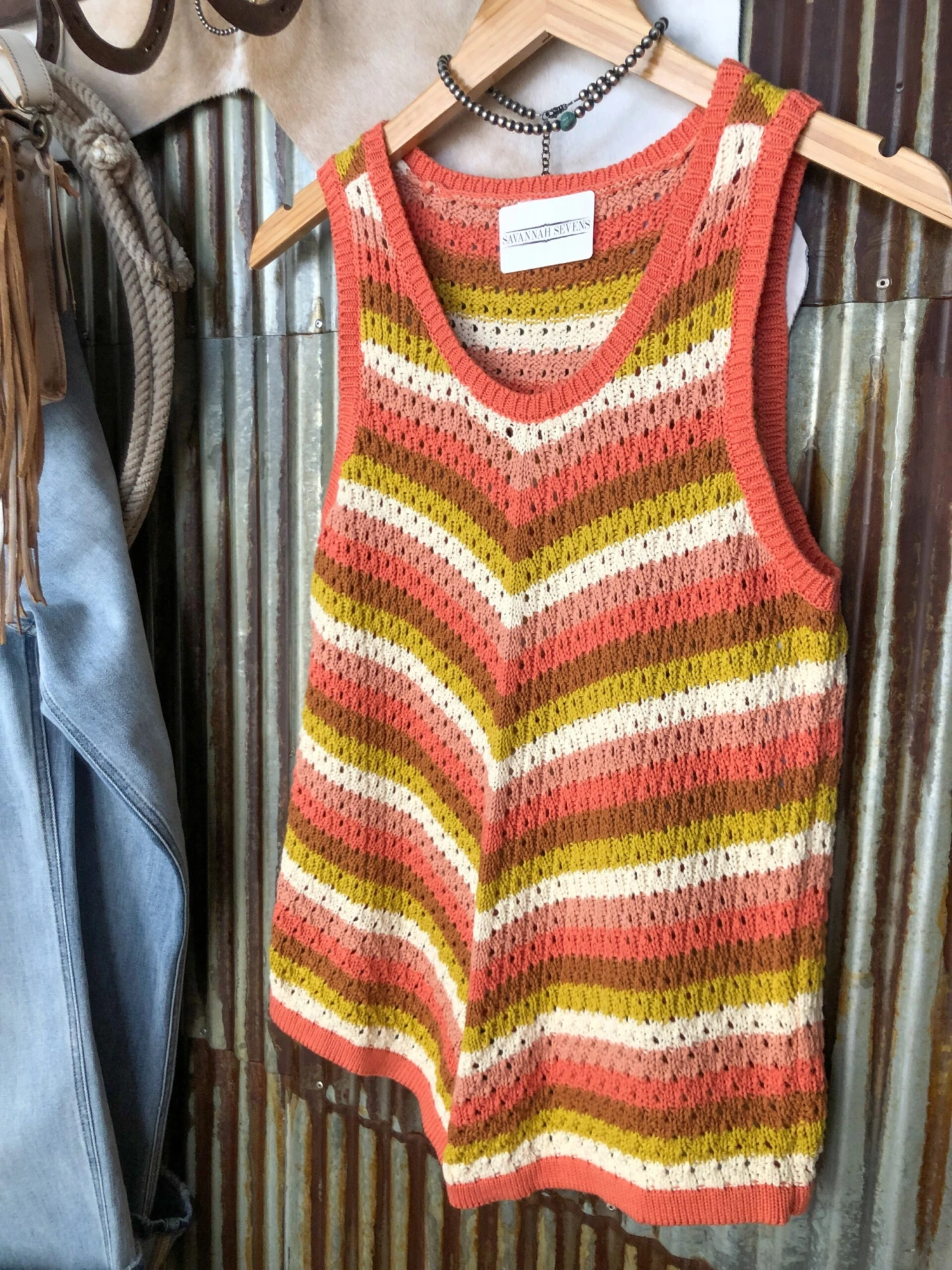 - Striped knit sleeveless top.