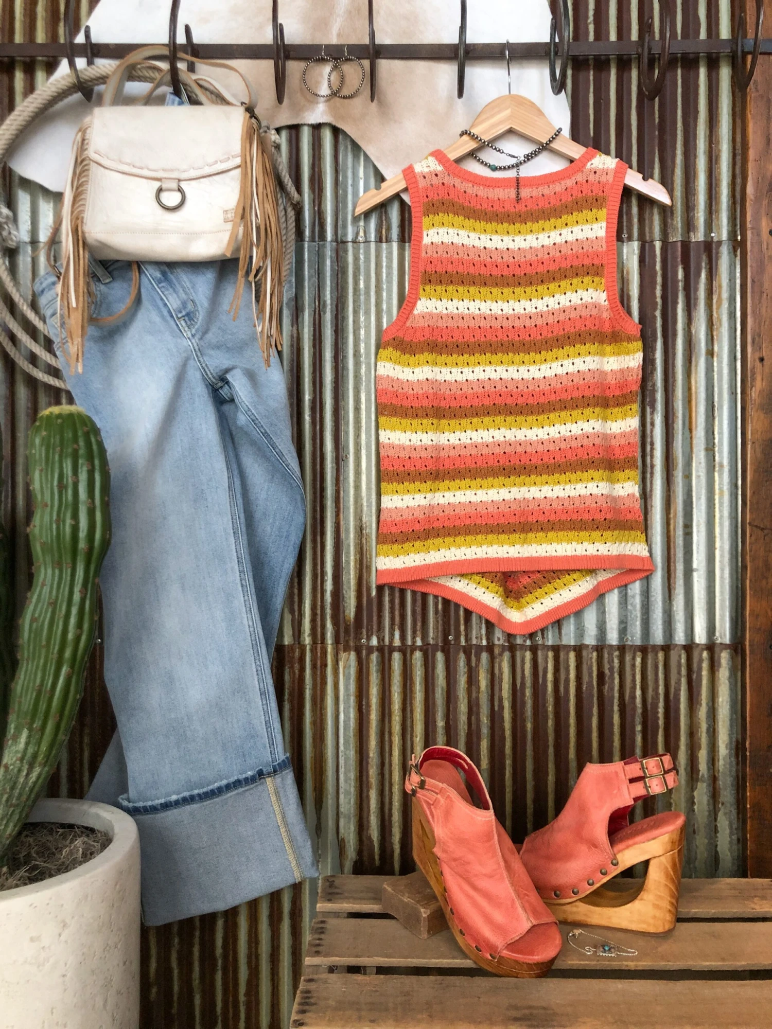 - Shown styled with The Pocatello High Rise Wide Leg Jean, The Monroe wedges, The Tahama bag, Grenada Necklace, Brazen Bracelet, and Lacona Earrings.