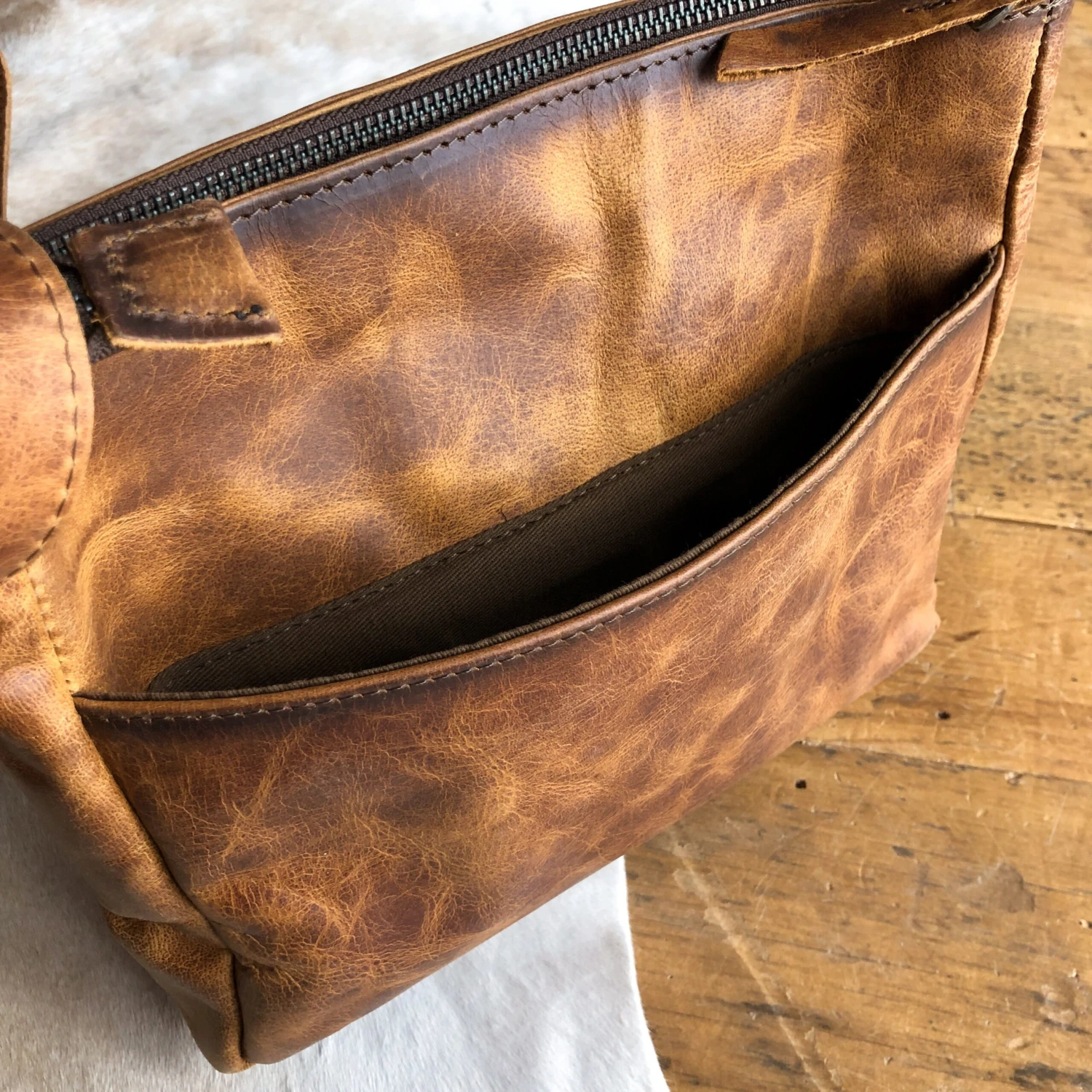 - Rustic leather that only gets better with time and use; leather varies slightly throughout.