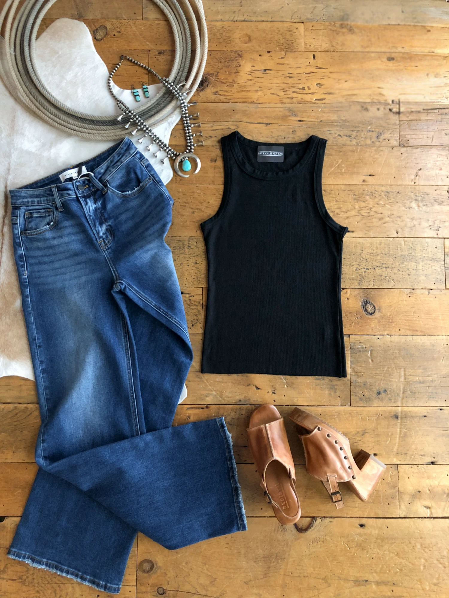 - Shown styled with The Bristol High Rise 90’s Wide Leg Jean, The Roslyn heels, and Nogales Necklace.