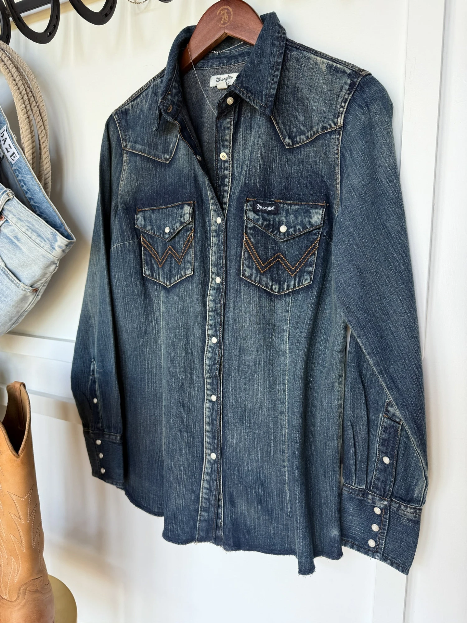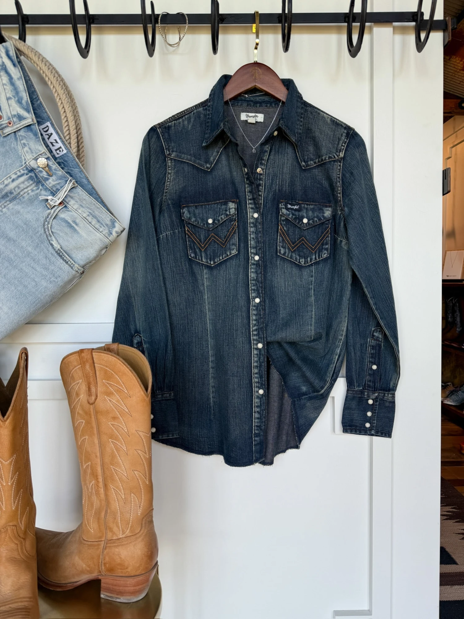 - Pearl snap chest pockets with traditional logo stitching and a hidden pen slot.