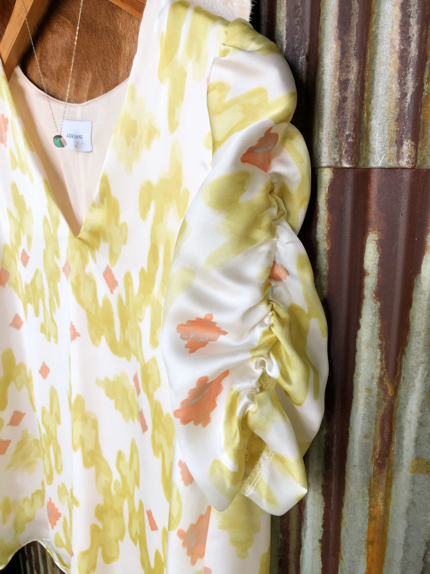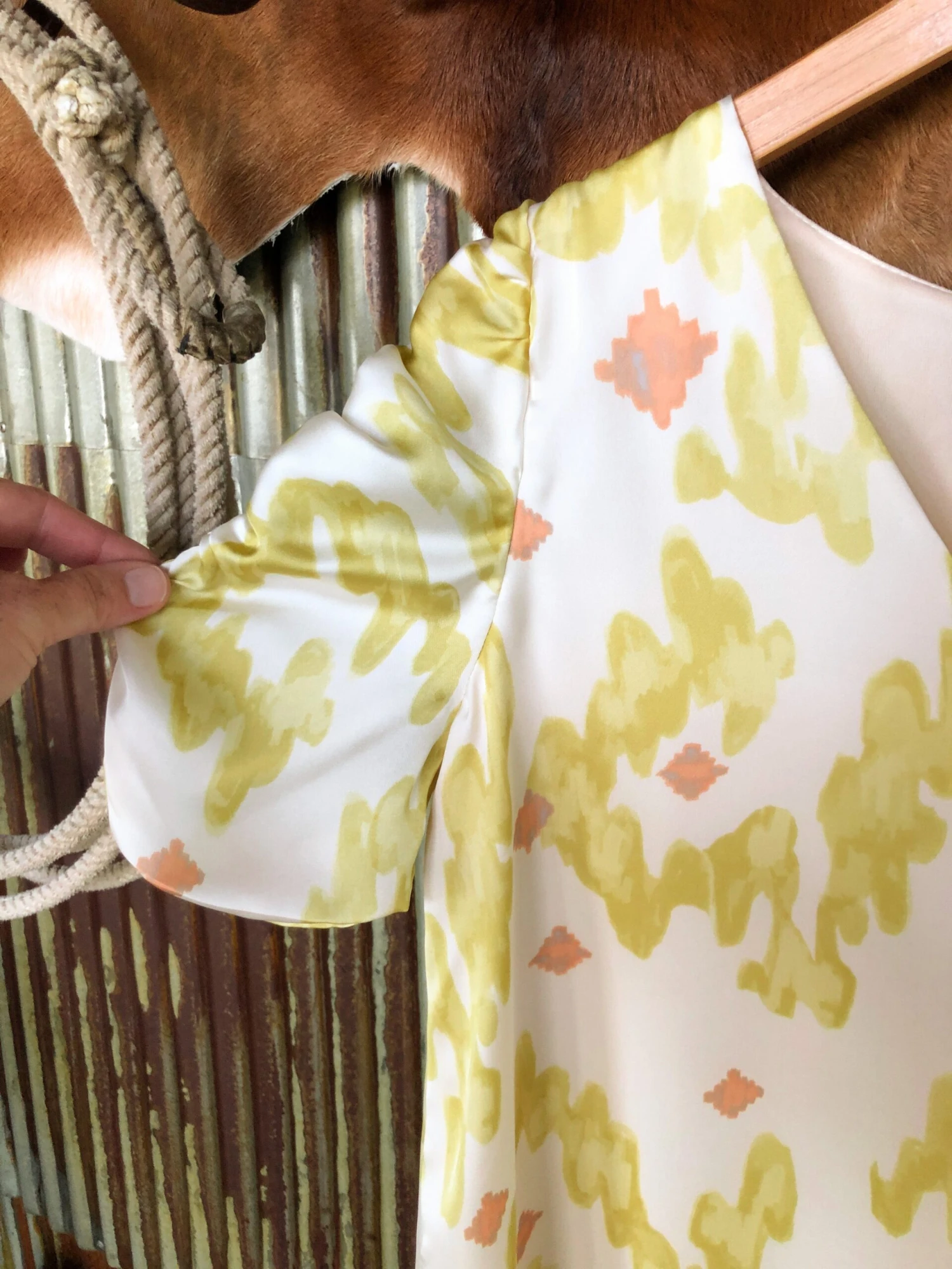 - Dreamy water color chartreuse and earthy coral southwest design.