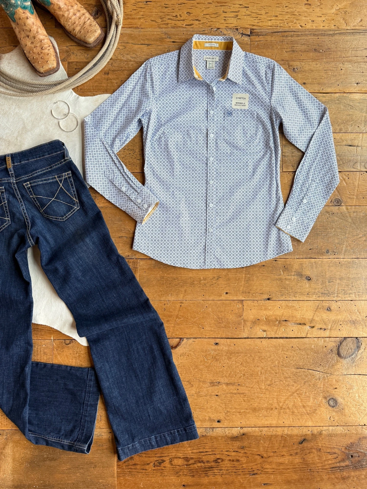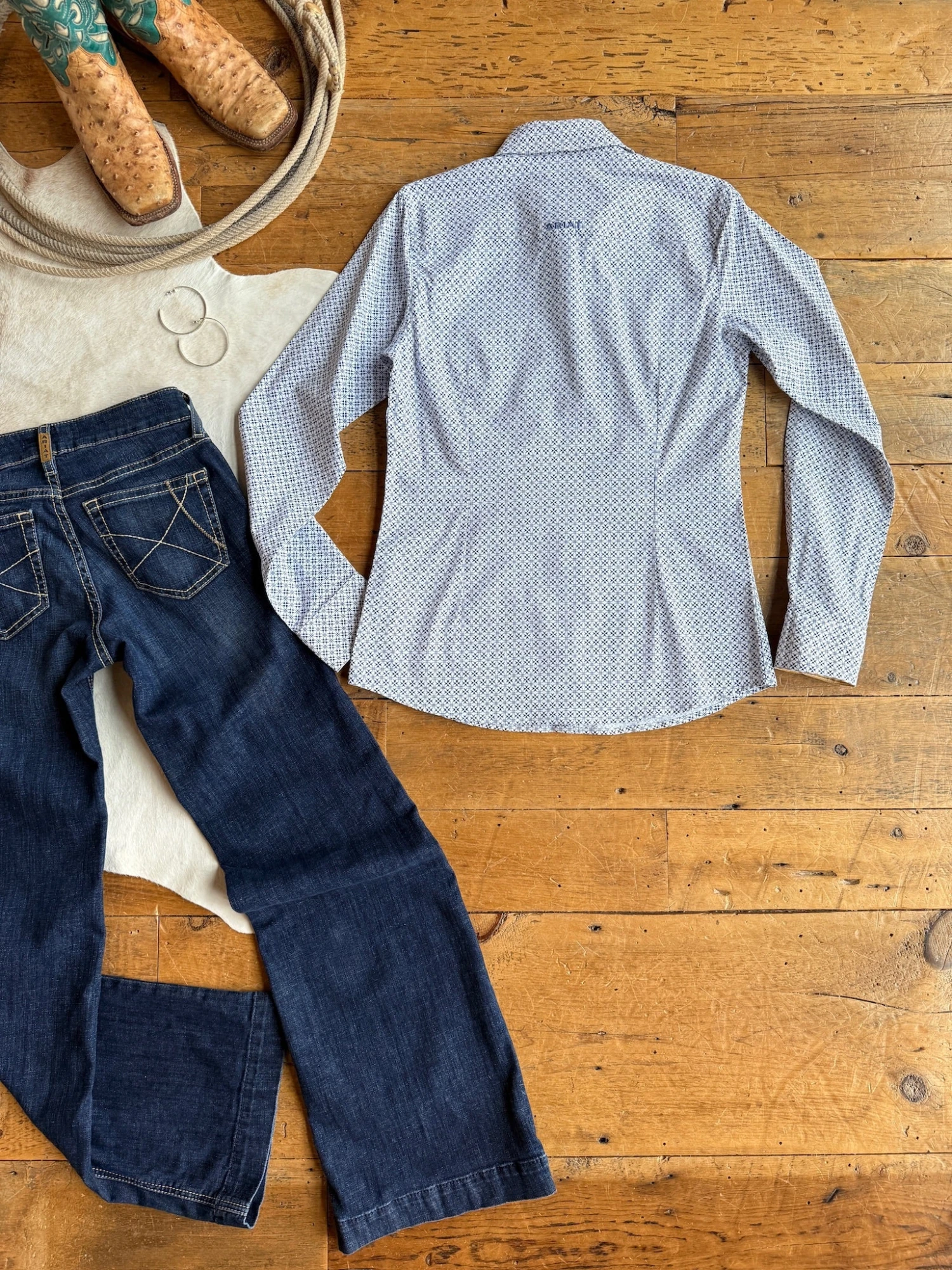 - Ariat patterned long sleeve summary up shirt.